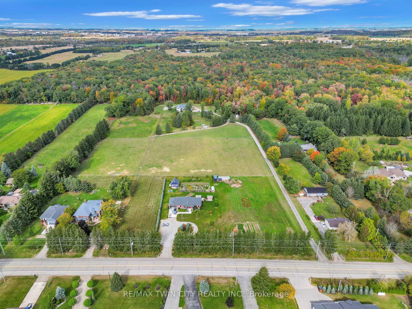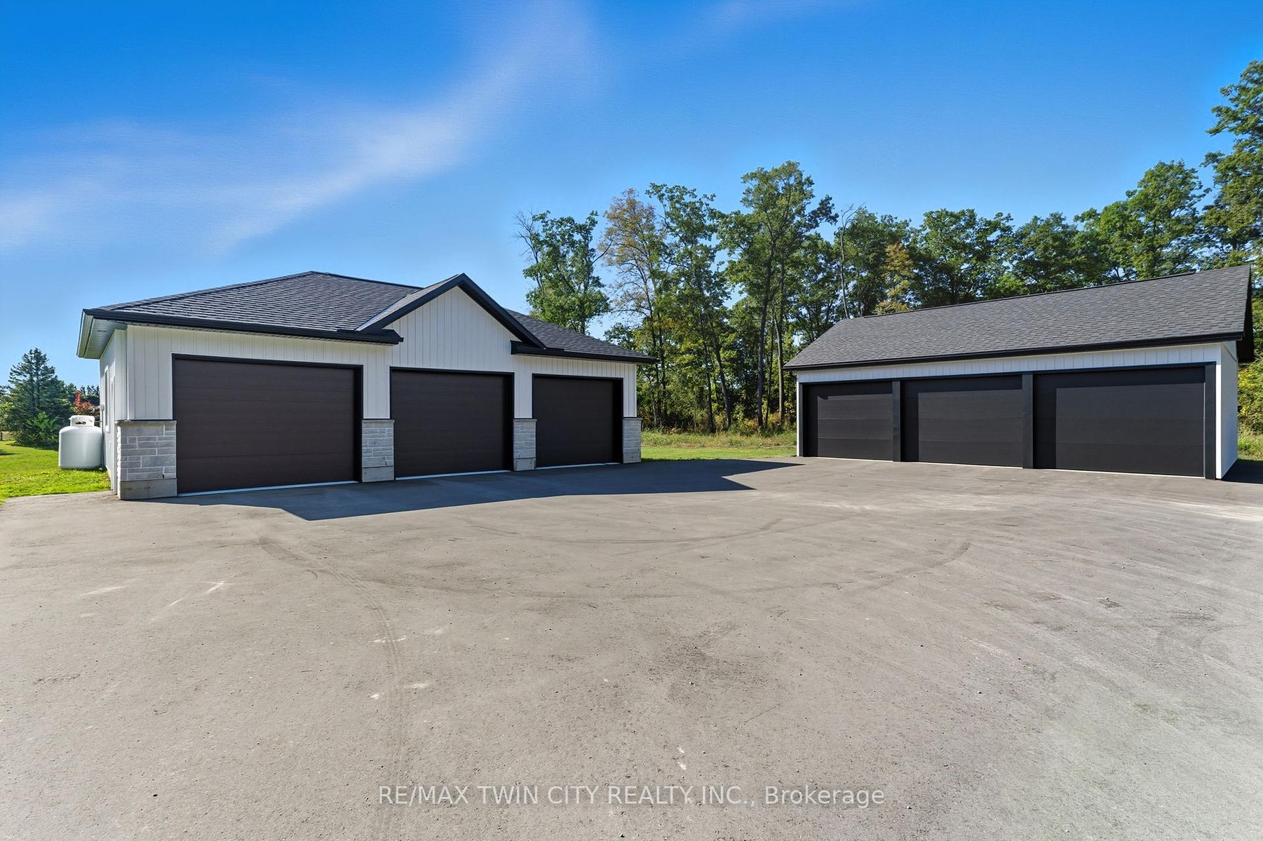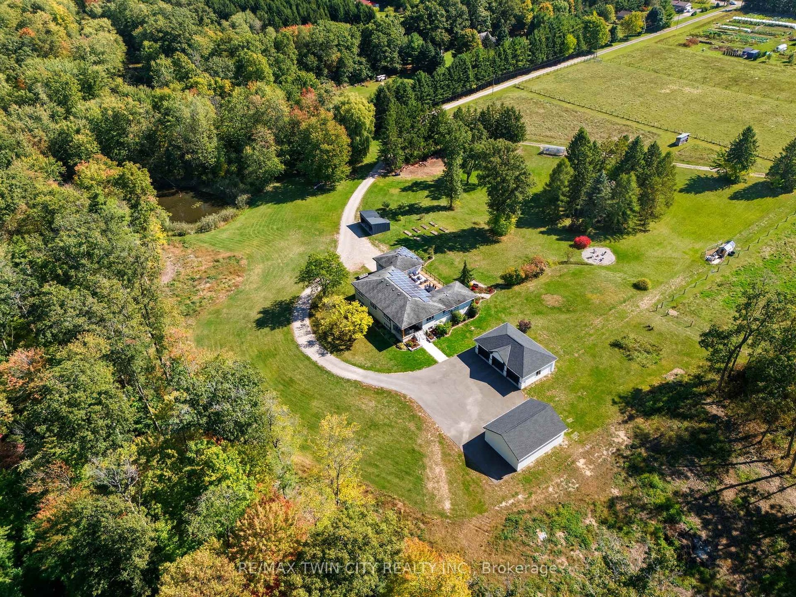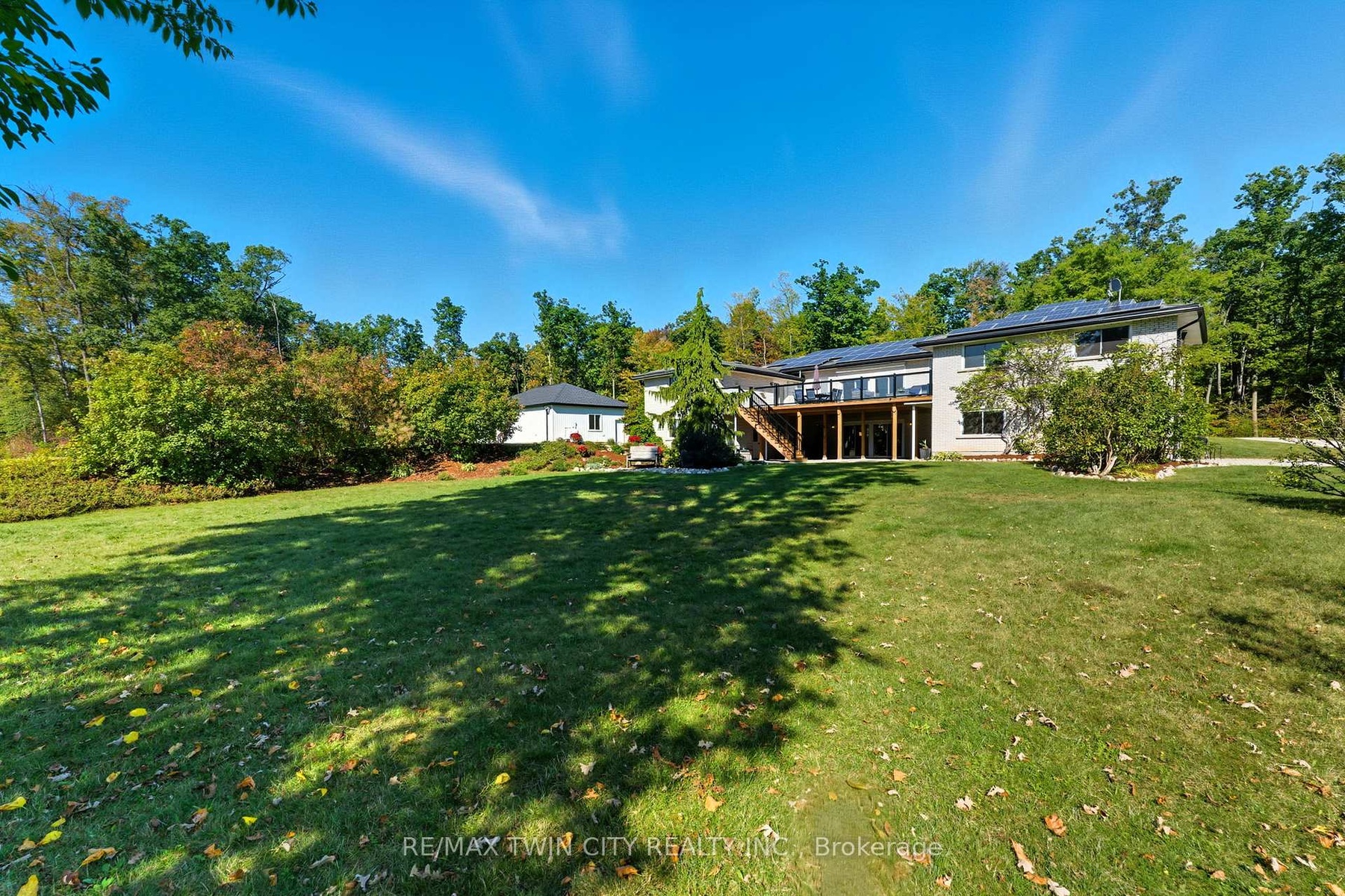 UNPARALLELED Privacy on 32 ACRES A Rare Country Estate with Modern Comforts. Welcome to an extraordinary retreat offering breathtaking views and endless possibilities, combining refined living with the tranquility of nature. The expansive 5-bedroom bungalow showcases timeless design and light-filled spaces throughout, featuring a grand living room with floor-to-ceiling windows framing sweeping views of open fields and forest. The beautiful primary bedroom offers a private fireplace, a luxurious ensuite with a standalone tub & shower a perfect sanctuary for relaxation. A walkout lower level provides equally impressive natural light and panoramic views, expanding your living and entertaining areas with a seamless indoor-outdoor connection. Step onto the large elevated deck and enjoy a serene, cottage-like ambiance the ideal setting for gatherings or quiet moments in total seclusion. A spacious mudroom provides ample storage for every familys needs, blending practicality with style. The 3-bedroom accessory apartment offers exceptional flexibility for extended family, guests, or a premium rental opportunity. For those seeking income potential, the property includes solar panels, selective forest logging, and approximately 10 acres of rentable farmland, creating a unique balance of lifestyle and investment. Nature enthusiasts will love the 1-acre pond, perfect for skating, fishing, or peaceful reflection, while acres of private forest with winding trails invite exploration. A 10 x 20 greenhouse, orchards, and raised garden boxes support a sustainable lifestyle. Thoughtful design continues with two 3-car garages, a newly paved asphalt driveway, and ample parking. Located in the sought-after town of Ayr, this estate offers small-town charm minutes from Cambridge, Brantford, KW, and Hwy 401 providing effortless access wherever life takes you. Don't miss this opportunity to own a one-of-a-kind home, where every day feels like a private getaway.