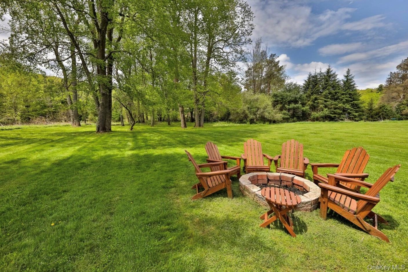 - View of grassy yard featuring a fire pit