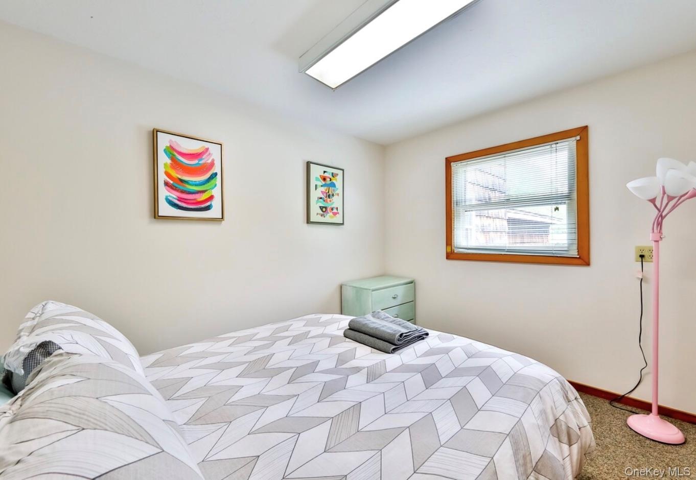 - Bedroom featuring light carpet and baseboard heating