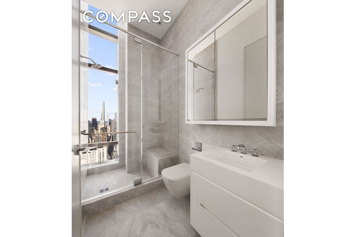 Commanding an entire floor, Penthouse 72 at Sutton Tower offers a truly breathtaking vantage point with uninterrupted 360-degree views of New York City’s skyline, rivers, and iconic landmarks. Designed by renowned architect Thomas Juul-Hansen, this sprawling 4,765-square-foot residence features 4 bedrooms and 4.5 baths, with every room oriented to maximize light, space, and the city’s ever-changing vistas. Direct elevator access opens into a dramatic great room with soaring 15-foot ceilings and southeastern exposure, framed by floor-to-ceiling windows that flood the space with natural light. The north-facing kitchen is a showpiece, featuring a Statuarietto marble island, Italian matte lacquer cabinetry, and a full suite of Sub-Zero and Wolf appliances, seamlessly connected to a formal dining room with sweeping northeastern views.