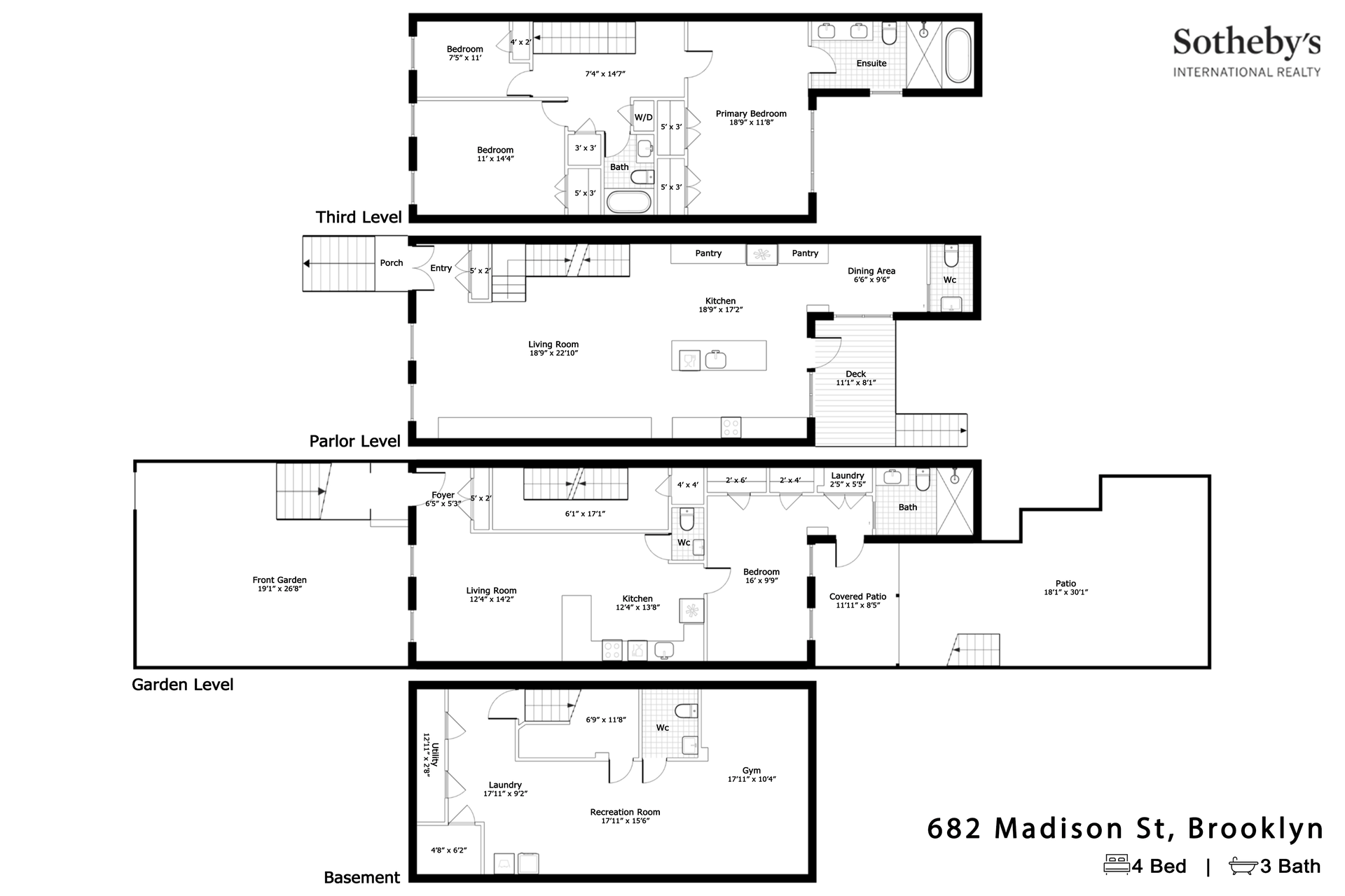 Welcome to 682 Madison Street, a beautifully renovated 20-foot-wide brownstone nestled on a tree-lined Bedford Stuyvesant block, featuring 4 floors including an 800 sq ft finished cellar which is included in the total estimated square footage. Renovated in 2019 with meticulous attention to detail, this home masterfully blends classic Brooklyn charm with modern finishes. Consisting of 2 apartments, this home has a multi-level owner’s unit plus an income producing garden apartment and can easily be converted into a single-family home.