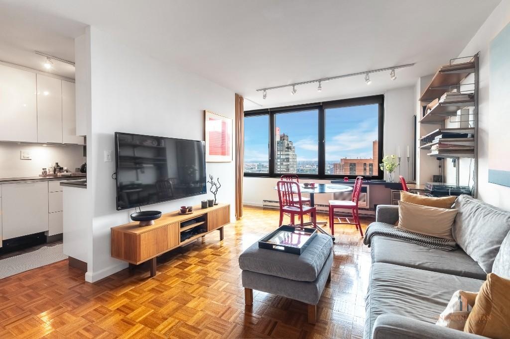 DescriptionYouve found the one youve been waiting for - move right into this one-of-a-kind, penthouse-level junior one-bedroom! This architect-designed gem has been meticulously renovated with the highest attention paid to every detail, maximizing the space in every way possible. High up in the peace and pin-drop quiet of the 38th floor, youll wake up each day to sunny, sprawling views of the East River through 12 feet of oversized windows. The living space boasts a layout enough for a living and dining area without obstructing the separate sleeping alcove, which can accommodate a queen-sized bed. The sleek and stylish kitchen features high-end stainless steel appliances, including a dishwasher, with tons of cabinets and counter room. The spacious bathroom provides a full-sized tub and tons of storage. With a separate dressing area and large entry foyer, not to mention the four large closets with additional top storage, everything has its place here, delivering you a seamless flow and uncluttered home. The dimmable accent lighting throughout is the final touch on this perfectly crafted residence.