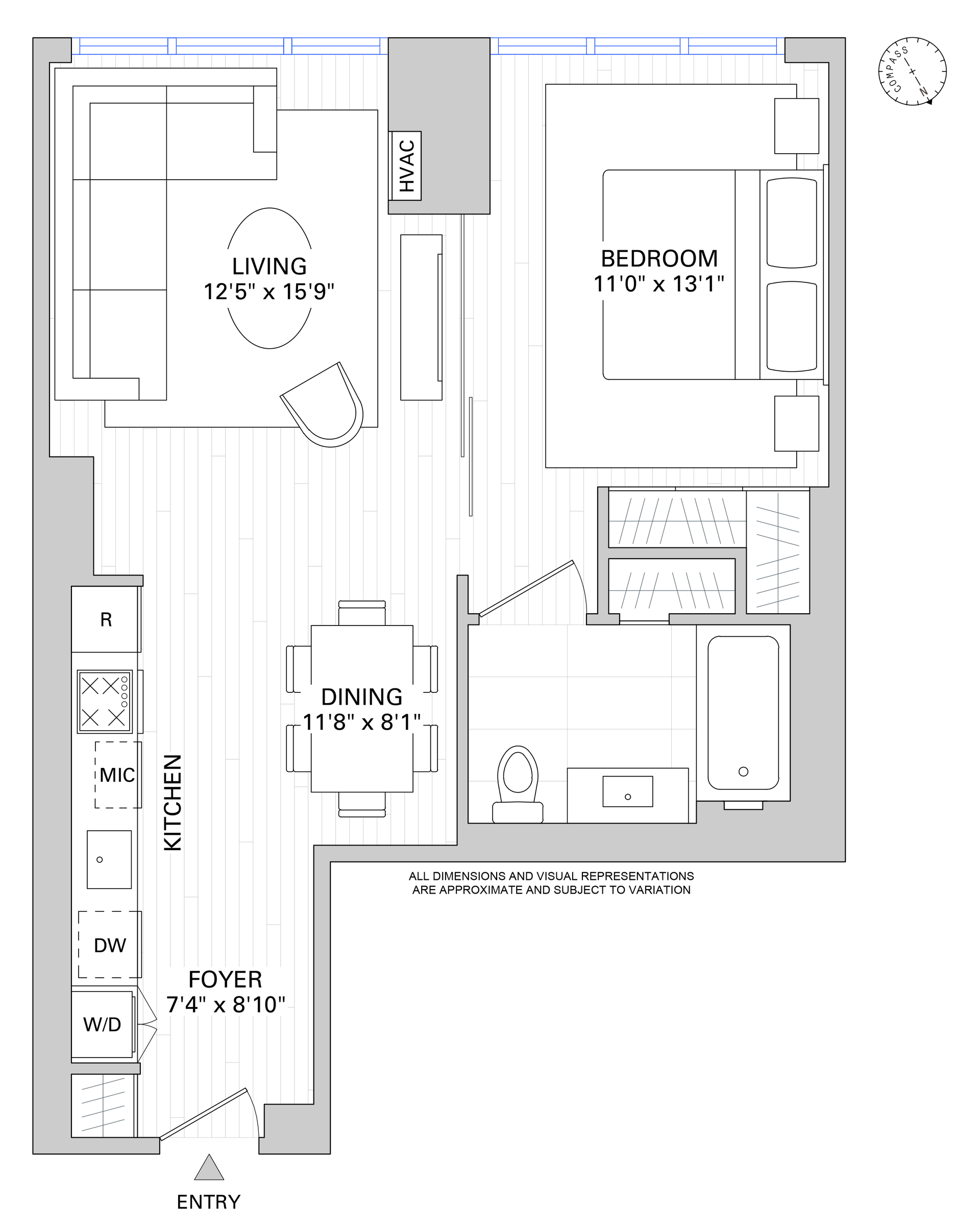 The intriguing and innovative interiors of 540 West 49th Street paired with its glass and steel facade position it as a modern architectural beauty in a class of its own. The dual-level lobby transitions into an open breezeway and central landscaped, 6,000 sq ft courtyard, which possesses an outdoor cinema and a reflecting pool between the North and South towers. Amenities include a 24/7 attended lobby, residents lounge with fireplace, fitness center, two landscaped roof decks with outdoor kitchens and bicycle storage.