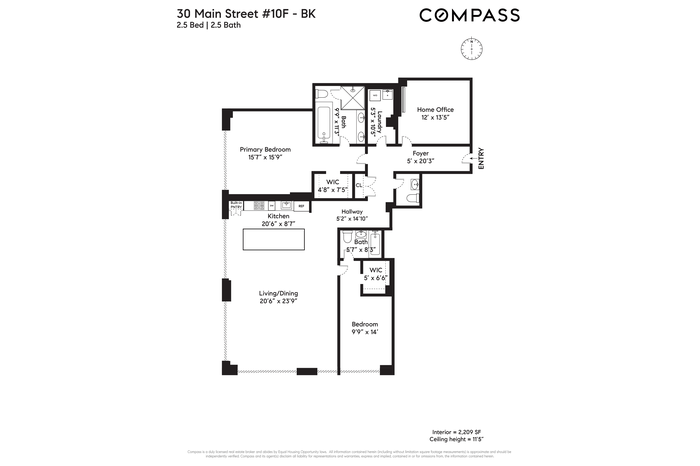 Come view this extraordinary corner loft at DUMBO’s coveted Sweeney Building! With just over 2,200 square feet and 11’ ceilings, this is the rare loft which offers scale & space as well as an ideal layout, including 2 bedrooms each with walk-in closets and en suite bathrooms plus additional interior home office, powder room and gracious living/dining space highlighted by 2 walls of oversized windows bringing in air & light all day through southern & western exposures.