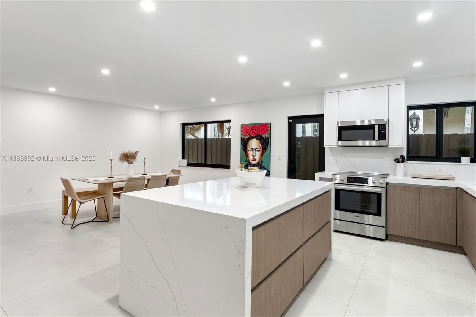 DescriptionGated and completely renovated home in The Roads, one of Miami’s most historic and desirable neighborhoods. 4 beds, 3 baths, and 2,658 square feet of living space with an open and bright floor plan flows seamlessly into the gourmet kitchen featuring custom Italian cabinetry, quartz countertops, and premium stainless steel appliances. The primary suite includes a walk-in closet and spa-inspired bathroom. Opportunity to create a 5th bedroom or a home office. Enjoy lush landscaping and the opportunity to create your dream backyard oasis. Attached, air conditioned, one-car garage. New whole-home reverse osmosis water filtration system, roof tile & gutter upgrades, and more. Walking distance to Brickell’s best restaurants and shopping.Virtual Tour: https://www.propertypanorama.com/instaview/mia/A11888882Amenities- BedroomOnMainLevel