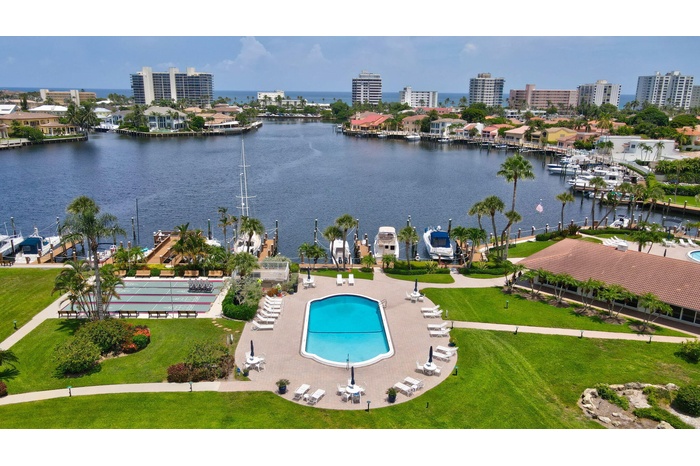 Escape reality AND BRING YOUR BOAT! This charming condo along the picturesque intracoastal is well-maintained with impact windows, new A/C, waterproof flooring, and your very own carport parking space. Tropic Harbor, a lively 55+ community, blends fun, comfort, & convenience. Enjoy 2 pools, a remodeled clubhouse & gym, and various activities. Just minutes from beaches, dining, & shopping. Dock space for boats up to 50 ft with no fixed bridges ensures easy intercoastal access. More than a home; it's a lifestyle!