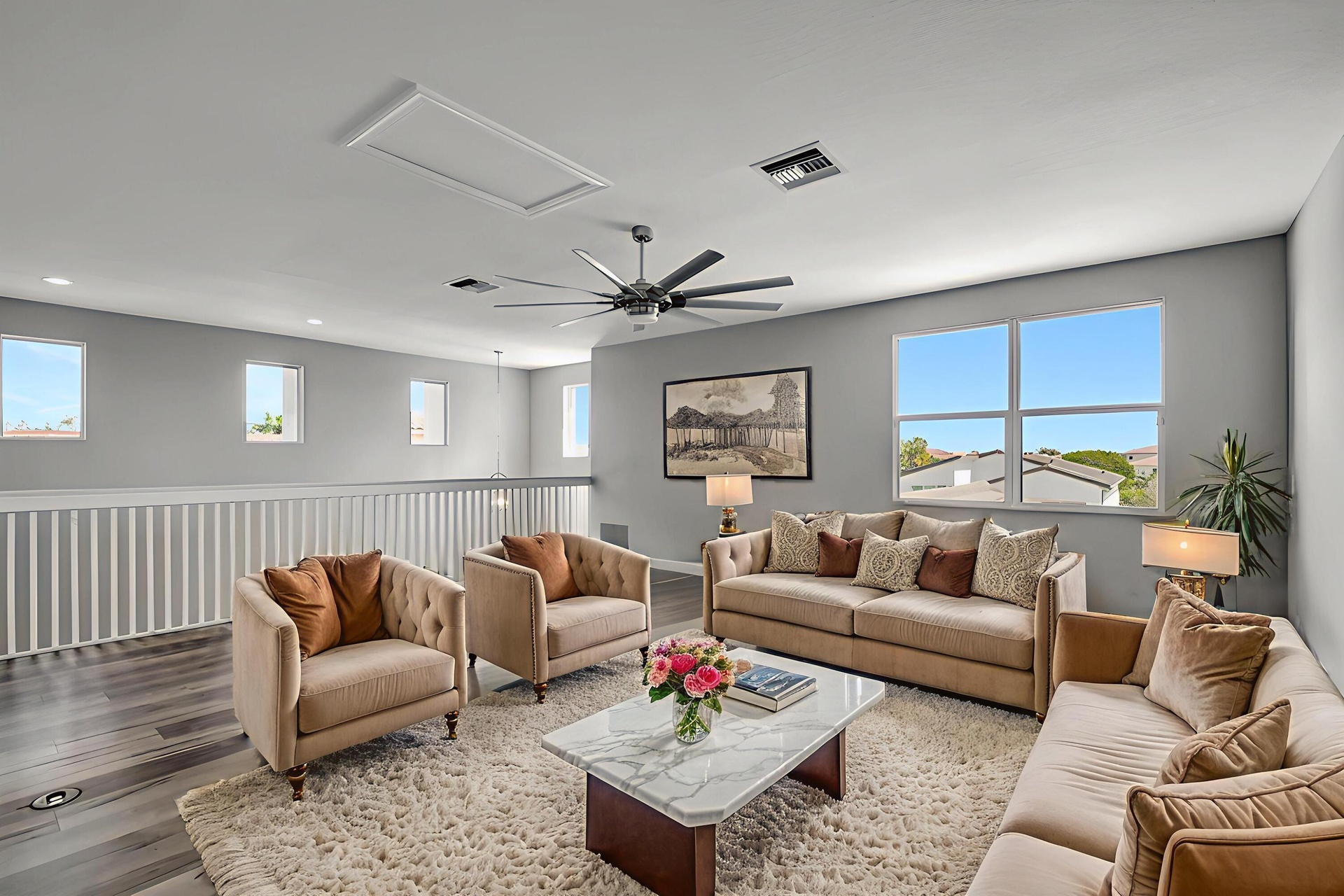 Beautiful 3 bed + plus den/office or 4th bedroom, 3.5 bath home in the desirable gated community of Andalucia! This expansive home also features a separate dining area and large loft, in a light-filled, open layout. The chef's kitchen boasts an oversized quartz island, gas range, and walk-in pantry, opening to a spacious living area perfect for entertaining. Enjoy peace of mind with full impact windows, a whole-home generator, and EV charger. The private backyard and covered patio are ideal for relaxing outdoors.Residents of Andalucia enjoy a clubhouse with a fitness center and pool, plus easy access to nearby equestrian centers and schools. This home combines size, style, and community amenities in one exceptional rental opportunity.