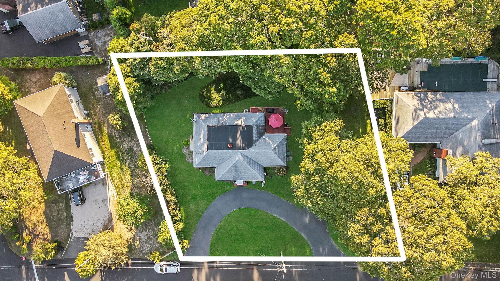 - Aerial view of property and surrounding area featuring property parcel outlined