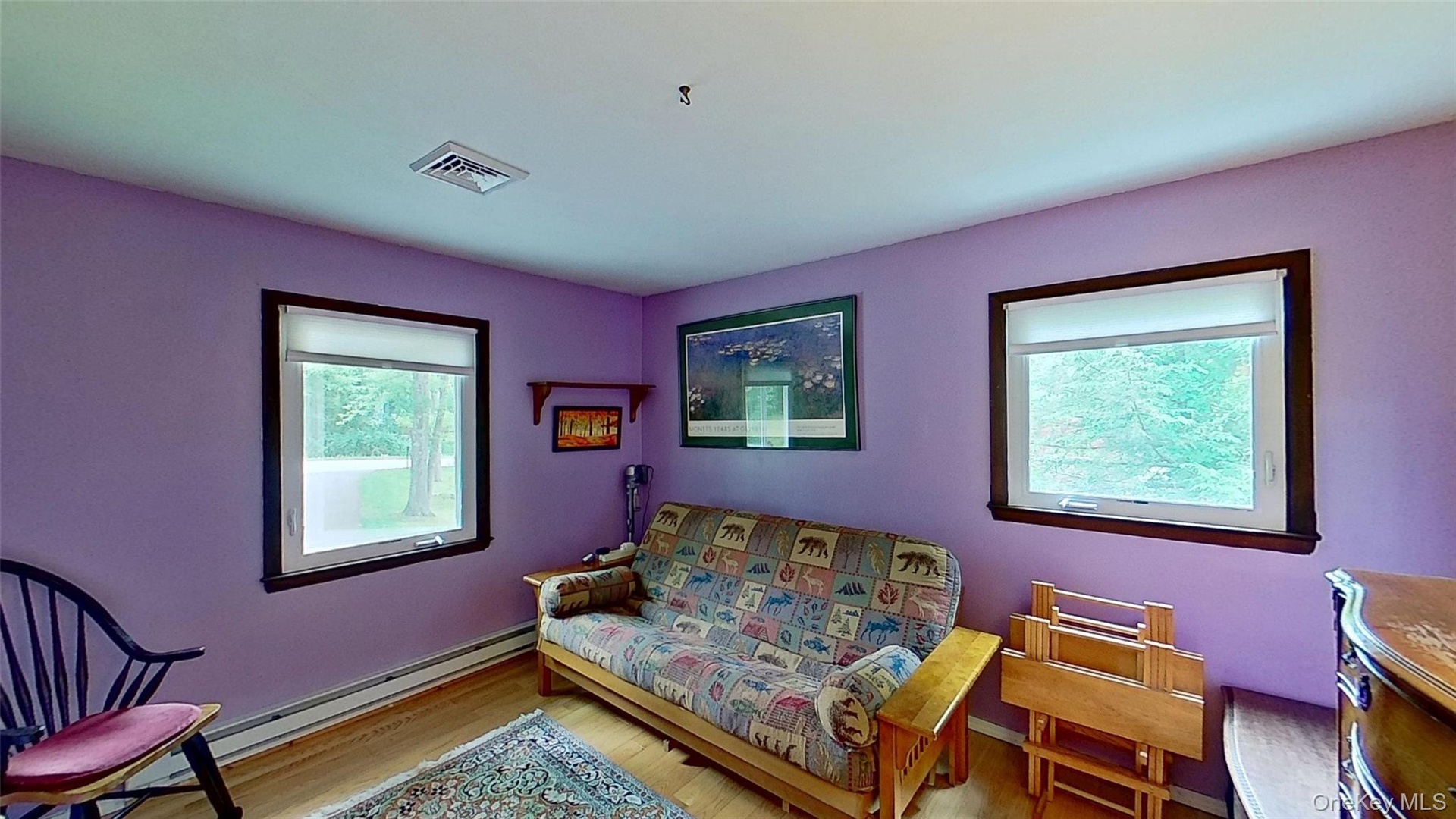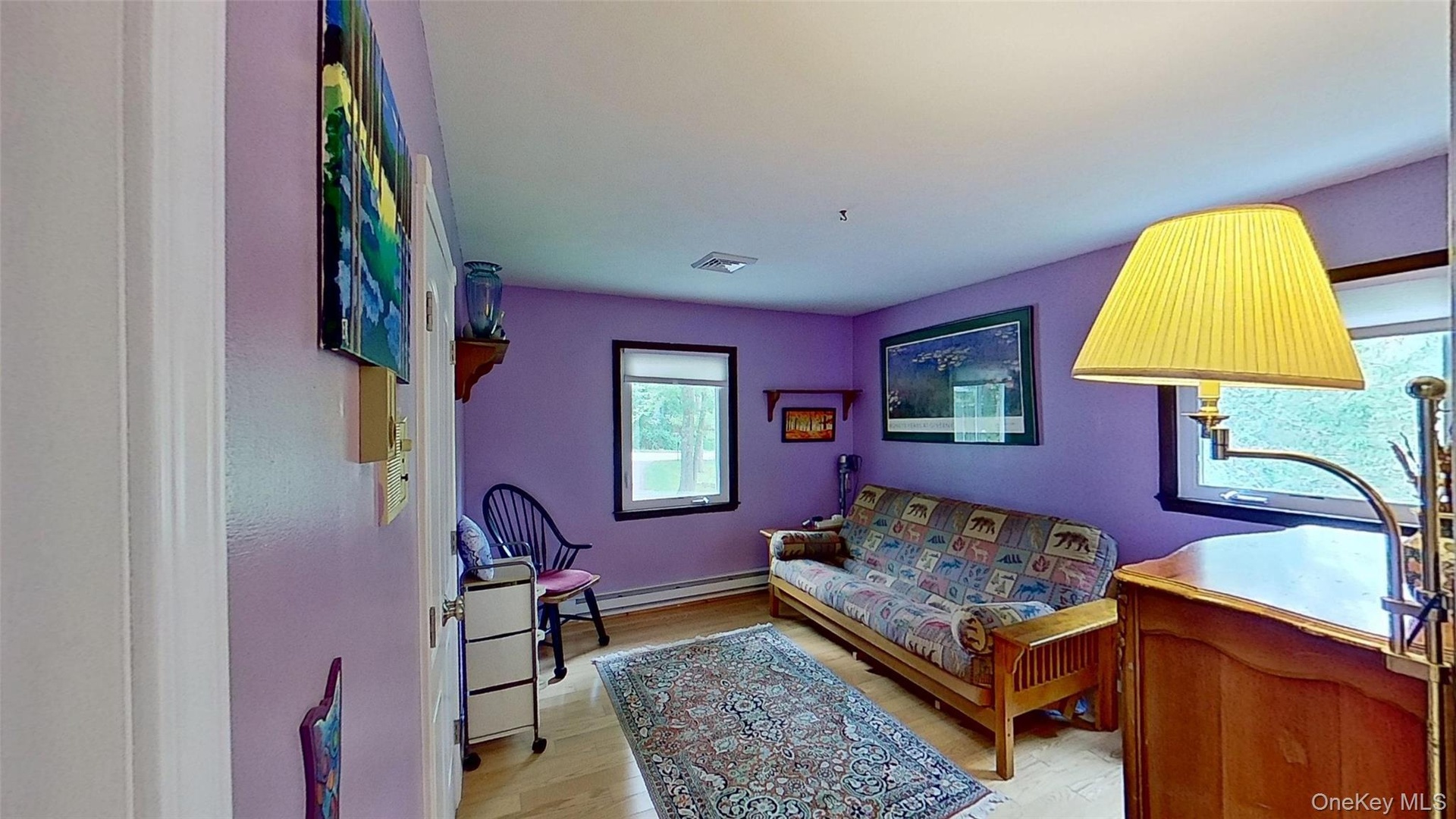 - Sitting room featuring baseboard heating and light wood-type flooring
