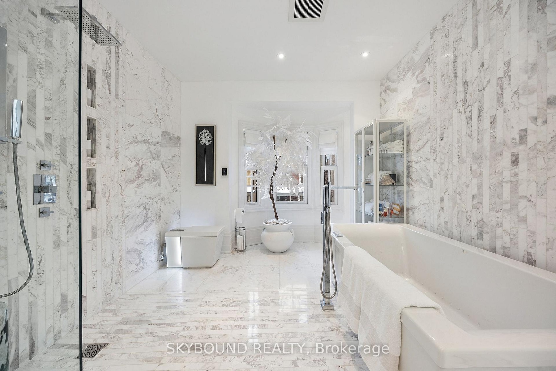 An Exquisite Riverdale Grand Residence as featured on BlogTO. Unparalleled luxury living in a magnificent, nearly 4,000 sq ft home steps from Broadview Station, offering ultimate urban convenience. This property boasts a meticulous, comprehensive renovation, a testament to unwavering commitment to detail and quality. Every element reflects bespoke finishes and a richly conceived design. South-facing exposures flood interiors with natural light, enhancing the sophisticated interplay of rich materials & contemporary elegance. The heart of the home is the impressive 25' gourmet kitchen designed for enthusiastic chefs and grand entertaining, it features a substantial island, premium Quartzite surfaces, Wolf/Subzero appliances & seamless transition to a professionally landscaped garden oasis. The principal primary bathroom is a sanctuary of refined taste. Clad in floor-to-ceiling Carrera marble tiles and high-end fixtures, this elegant space includes a luxurious Activ-air bathtub and NUMI toilet, representing the zenith of design and innovation. A remarkable feature is the vast third-floor suite, measuring 36'x12.5'. This versatile space offers incredible flexibility, easily transforming into two distinct bedrooms, bringing the total to four above-grade bedrooms. Expansive principal rooms offer abundant space and fluid connectivity while the lower level is a living area, perfect for multi-generational families or live-in staff, offering both privacy and practicality. The prime location provides immediate access to Broadview subway/streetcars, ensuring effortless city connectivity. Nearby the vibrant Danforth corridor, offers fine dining, curated shopping,cultural venues likeThe Music Hall &Carrot Common. Residents will also appreciate proximity to Riverdale & Withrow Parks, highly regarded public/private schools including sought-after Montessori options, further enhancing its appeal, and a short commute to downtown Toronto. An unparalleled lifestyle is waiting for you.