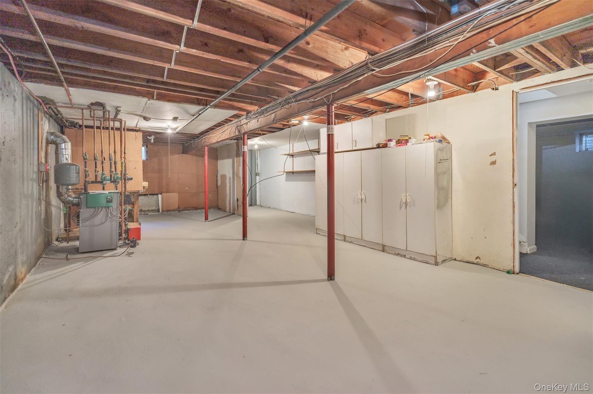 - Unfinished basement featuring a heating unit
