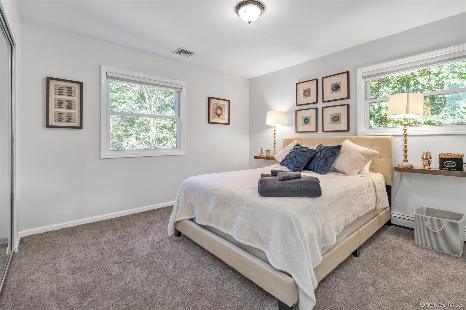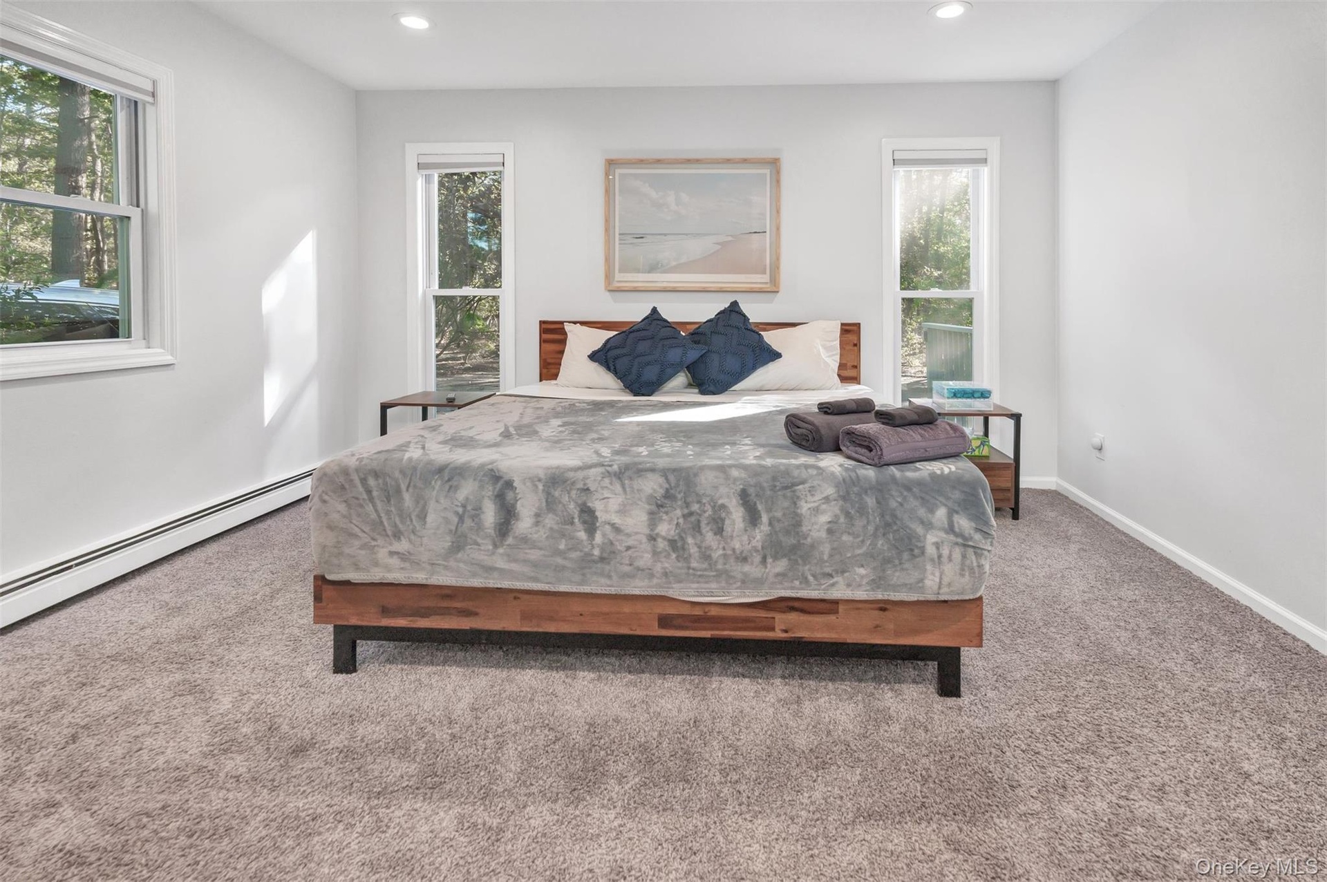 - Upstairs Guest Bedroom with carpet flooring and a baseboard radiator