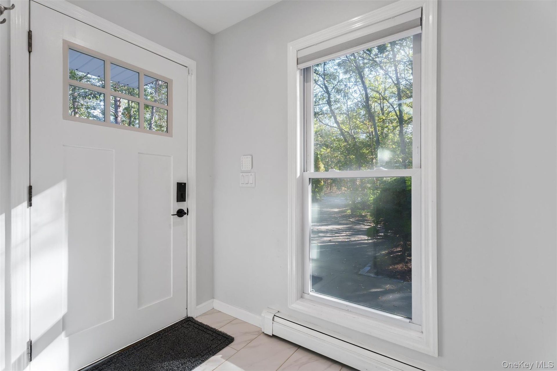 - Foyer entrance with a baseboard radiator and baseboards
