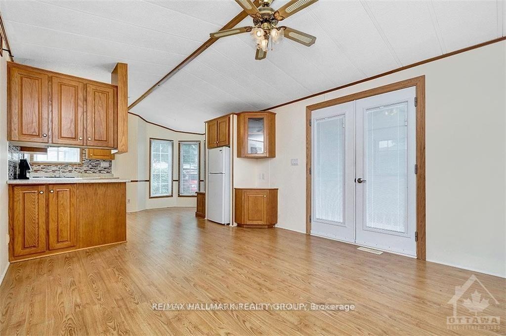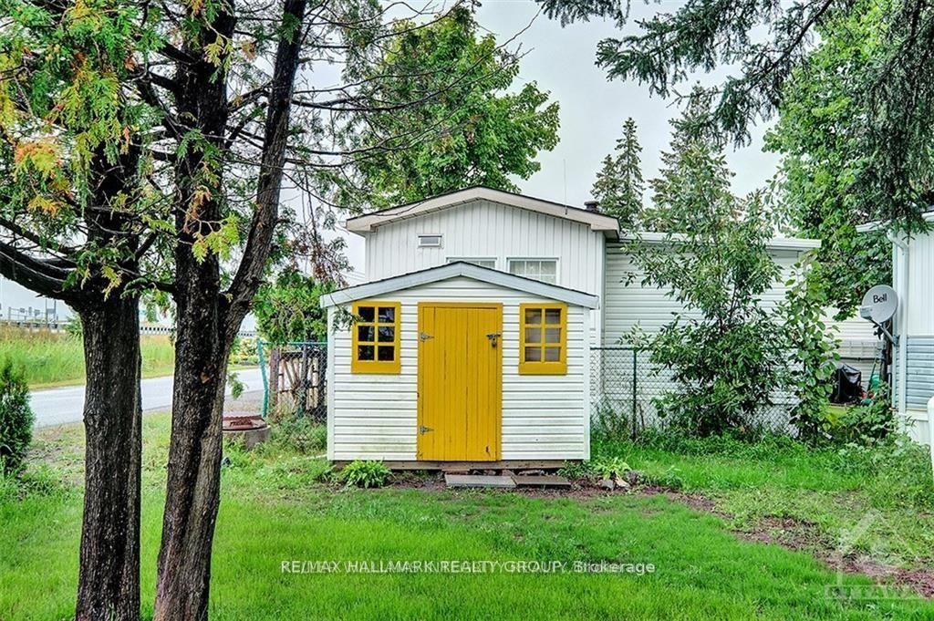 Enjoy the best of country living in Ashton Pines, a sought-after 55+ adult community located just 8 minutes from both Stittsville and Carleton Place. This well-cared-for, move-in ready mobile home offers the perfect blend of comfort and low-maintenance living in a welcoming retirement setting. The spacious living room opens through double doors to a large deck - a perfect spot for morning coffee or hosting friends. The bright eat-in kitchen features generous cabinetry, a gas stove, double sink with a corner window, and a cozy dining nook with a bay-window feel framed by three tall windows. A bonus corner counter with cupboard and display cabinet above adds both style and storage, with easy-care laminate flooring flowing throughout the home. The bedroom includes two closets with built-in shelving and drawers, along with windows on either side that bring in plenty of natural light. A full bathroom completes the layout. Sunlight filters through every room, creating an inviting, cheerful atmosphere. Outdoors, the private yard offers mature trees, lawn space, and a storage shed for convenience. Community amenities include an inground pool, and the pet-friendly environment makes it an ideal place to relax and enjoy a peaceful lifestyle. Key Details: Monthly Lot Fee Approx. $675; Water Testing & Sewer Approx. $41/Month; Annual Property Taxes Approx. $798. Park management approval required. Don't miss your chance to enjoy affordable, peaceful living in a friendly community - schedule your viewing today!