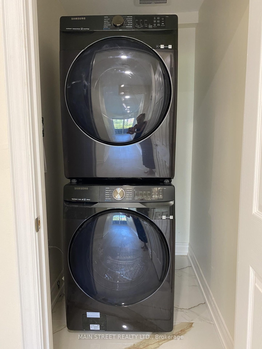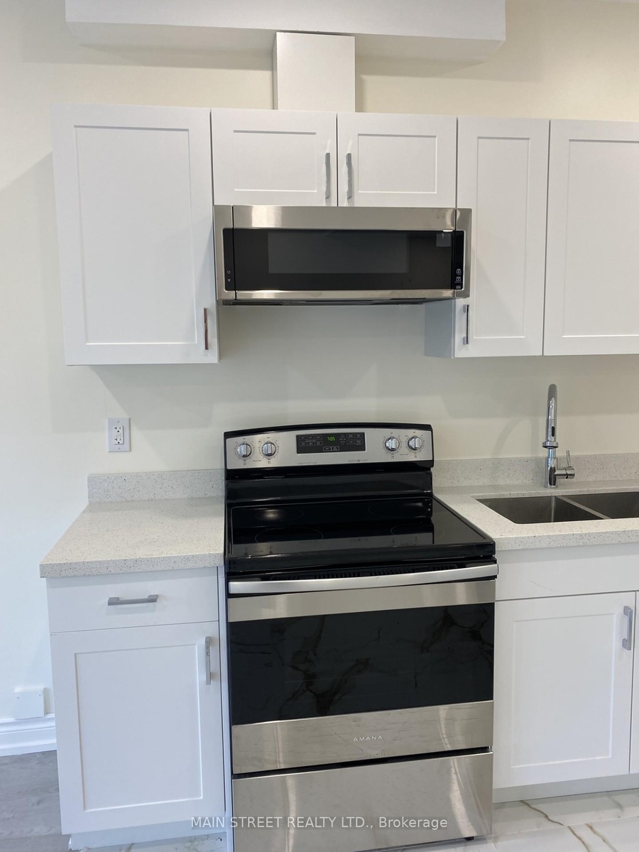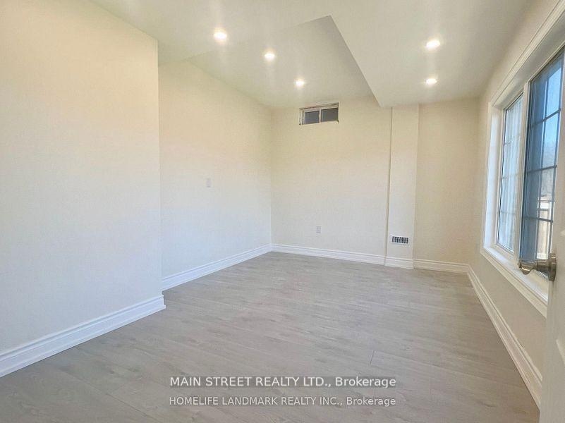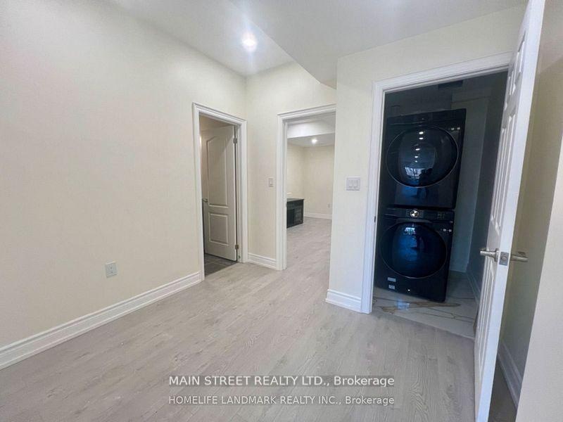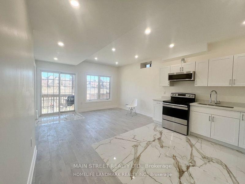 "Welcome to this newly renovated, light-filled basement apartment that backs onto a scenic ravine. This legal 2-bedroom, 1-bathroom unit boasts a modern, open layout that rivals upper-floor living, with large windows and pot lights throughout. The kitchen is a highlight, featuring soft white cabinetry and sleek light grey laminate flooring, adding a contemporary touch to the entire space. Tenants benefit from their own private laundry room with newer appliances. Enjoy a walk-out to a deck and spacious shared backyard, with the convenience of a separate entrance. Safety is a priority, with new exterior lighting along the side of the home. With 9 ceilings, this unit is situated in a family-friendly neighbourhood near parks, shopping, a new school, and easy access to major highways."