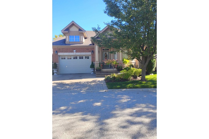 Welcome to Briar Hill, an adult golfing community.This unit is situated on a sought after exclusive enclave, backing onto the golf course. This 1253 sq. ft. + newly finished lower level walkout which features 2 bedrooms + den, 3 baths, oversized single garage, hardwood flooring on main level and laminate (AC5) on lower level. Bathrooms are senior friendly with a whirlpool tub. The open-concept living/dining/kitchen area flows seamlessly with hardwood floors and kitchen features granite countertops and stainless steel appliances.Main floor laundry room. Step outside to private balcony and golf course view. Off main living space you'll find the primary suite, with walk-in closet and ensuite bath + a den. The lower level walks out to private patio. The vibrant Briar Hill community boasts 36-hole golf course, scenic trails, sports dome, gym, tennis courts, pool, spa and dining options. Make this exceptional property yours! *For Additional Property Details Click The Brochure Icon Below*