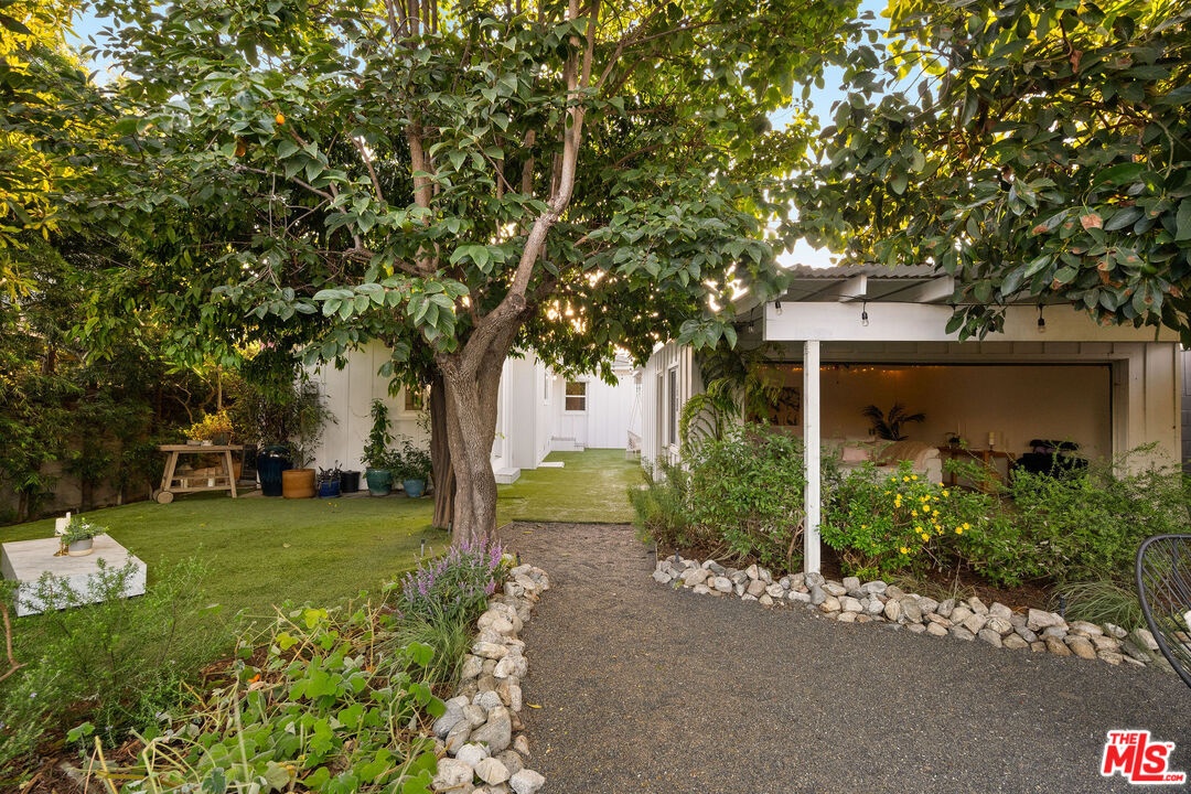 Tucked away on a rare 8,538 square foot lot, this 4 bdrm/3 bath home has been completely renovated, creating a haven where beauty meets possibility, and every corner invites comfort and ease. Set on one of the Westside's most inviting streets, this home blends warm California style with chic modern updates and feels like a private resort, surrounded by lush, magical landscaping that creates a serene oasis in the heart of the city. Inside, the living space unfolds across a bright, open concept layout where the living room, dining area, and chef's kitchen flow effortlessly together. The kitchen is a showstopper, featuring high-end appliances, an oversized breakfast bar, custom cabinetry, and elegant tile-work that makes cooking and entertaining a joy. Spa-inspired bathrooms and airy bedrooms complete the home's thoughtful interior. Step outside to discover the real magic - a peaceful, gated backyard with lush gardens and four distinct outdoor areas, including a sunny dining patio, a shaded lounge and garden retreat, and a wide-open yard offering endless possibilities to add a pool! The detached garage, with its roll-up door opening directly to the garden, is a flexible bonus space - ideal for a hangout room, yoga or zen retreat, creative studio, office, or even a future ADU! Perfectly positioned near Westside favorites like Hatchet Hall, Lodge Bread, Menotti's, The Corner Door, and Saijo Handroll Bar, this home delivers the best of both worlds: a tranquil, move-in ready sanctuary with unmatched access to the area's best dining, shopping, and beaches.