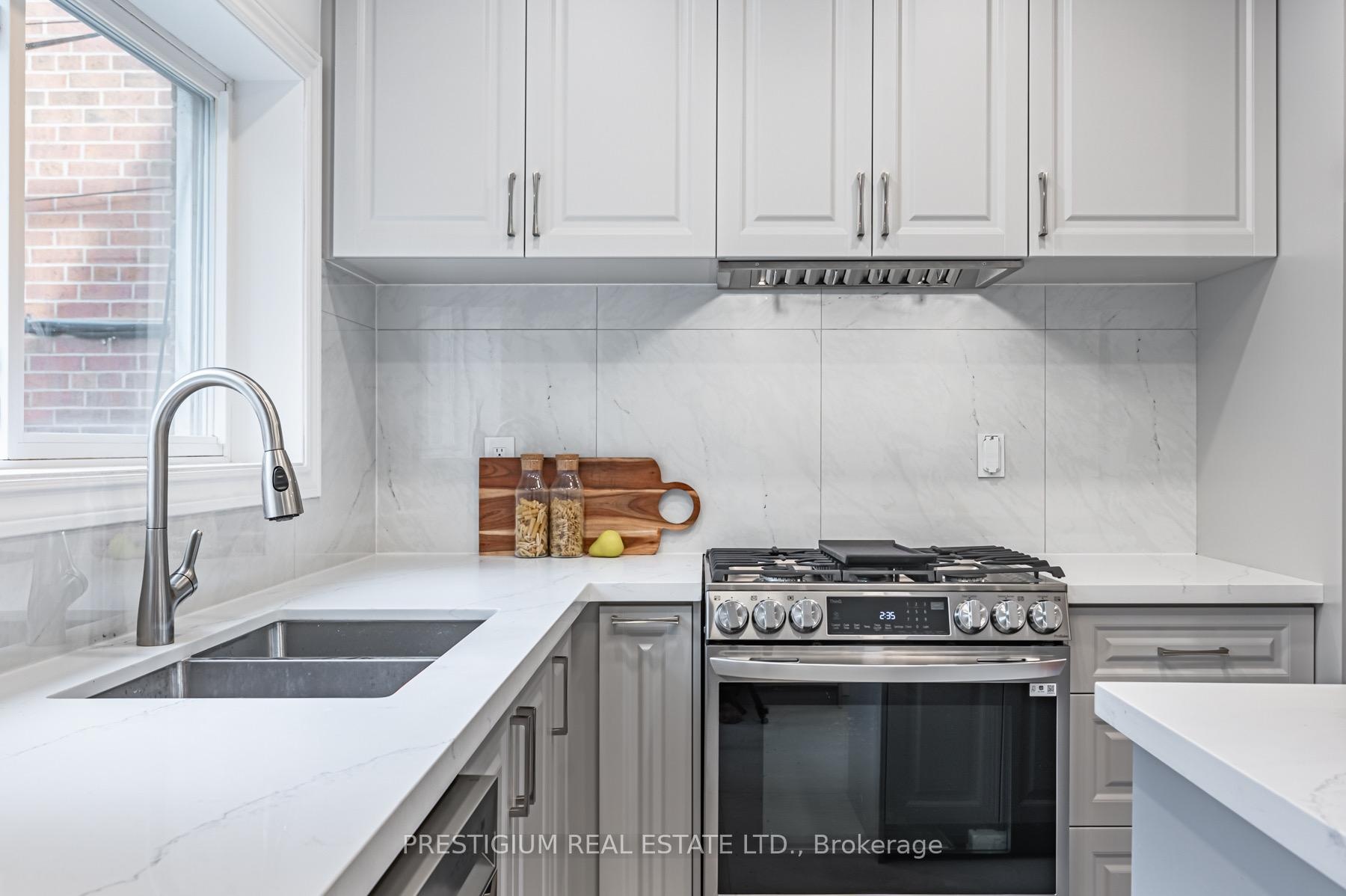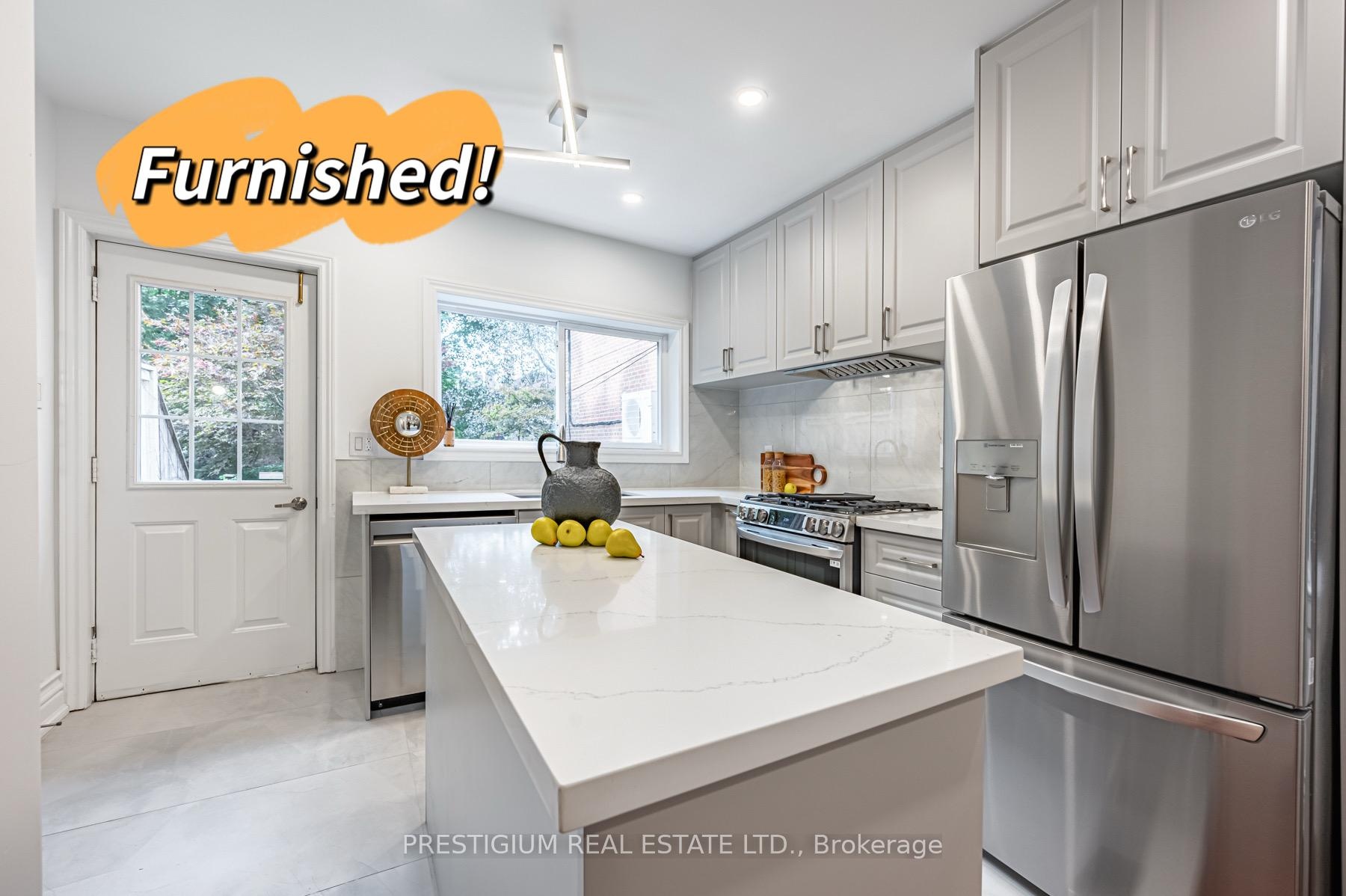 A Lovely Renovated Home In Coveted Davisville Village! It's The Perfect Starter Home Or Condo Alternative. A Hard To Find Private Drive Fits Two Cars In Front Yard. Newly Upgraded Open Concept Kitchen Offers Plenty Of Cabinet Storage. New Kitchen Appliances Gas Range and quartz countertop. Fully Finished Basement Has Separate Door To Walk Out Stairs. Basement Space Can Set Up As Home Studio Or Office Or Another Bedroom. New Deck And Interlocking At Backyard.