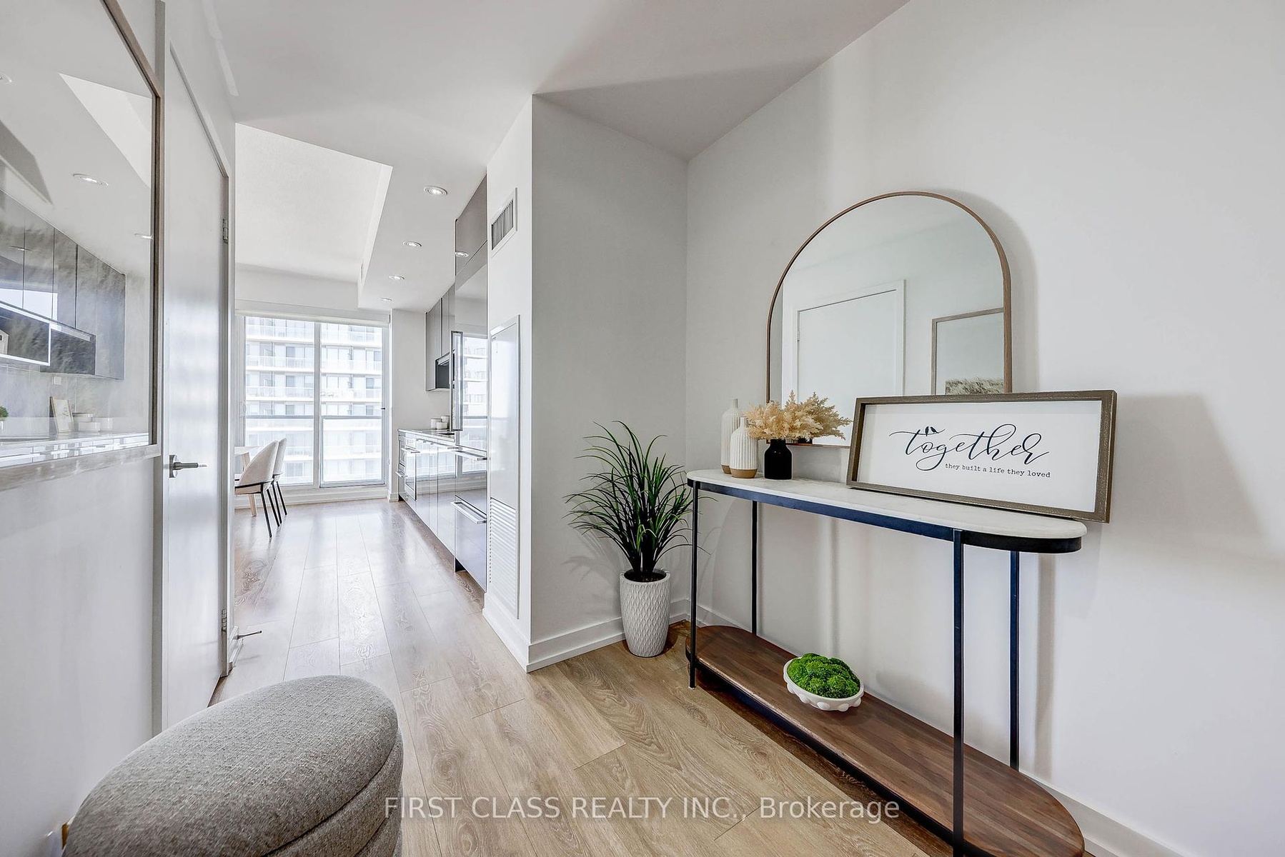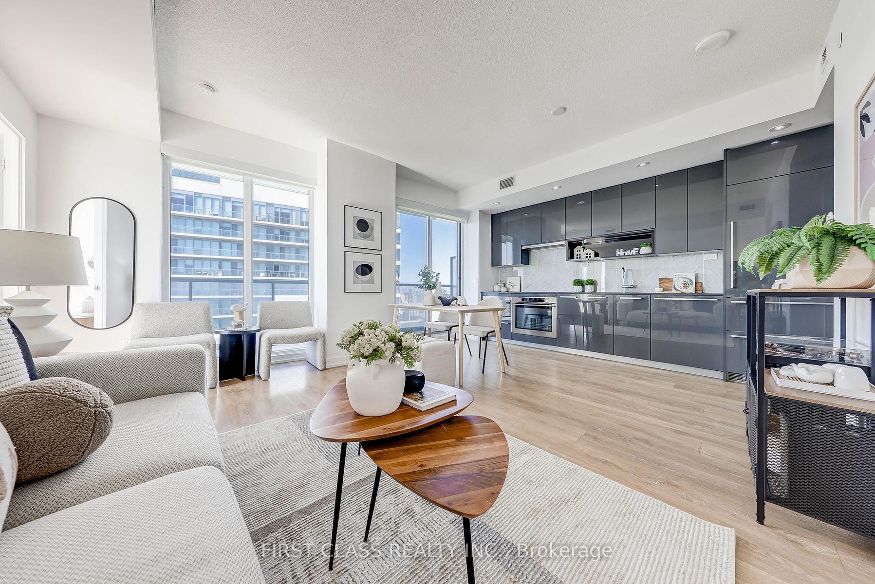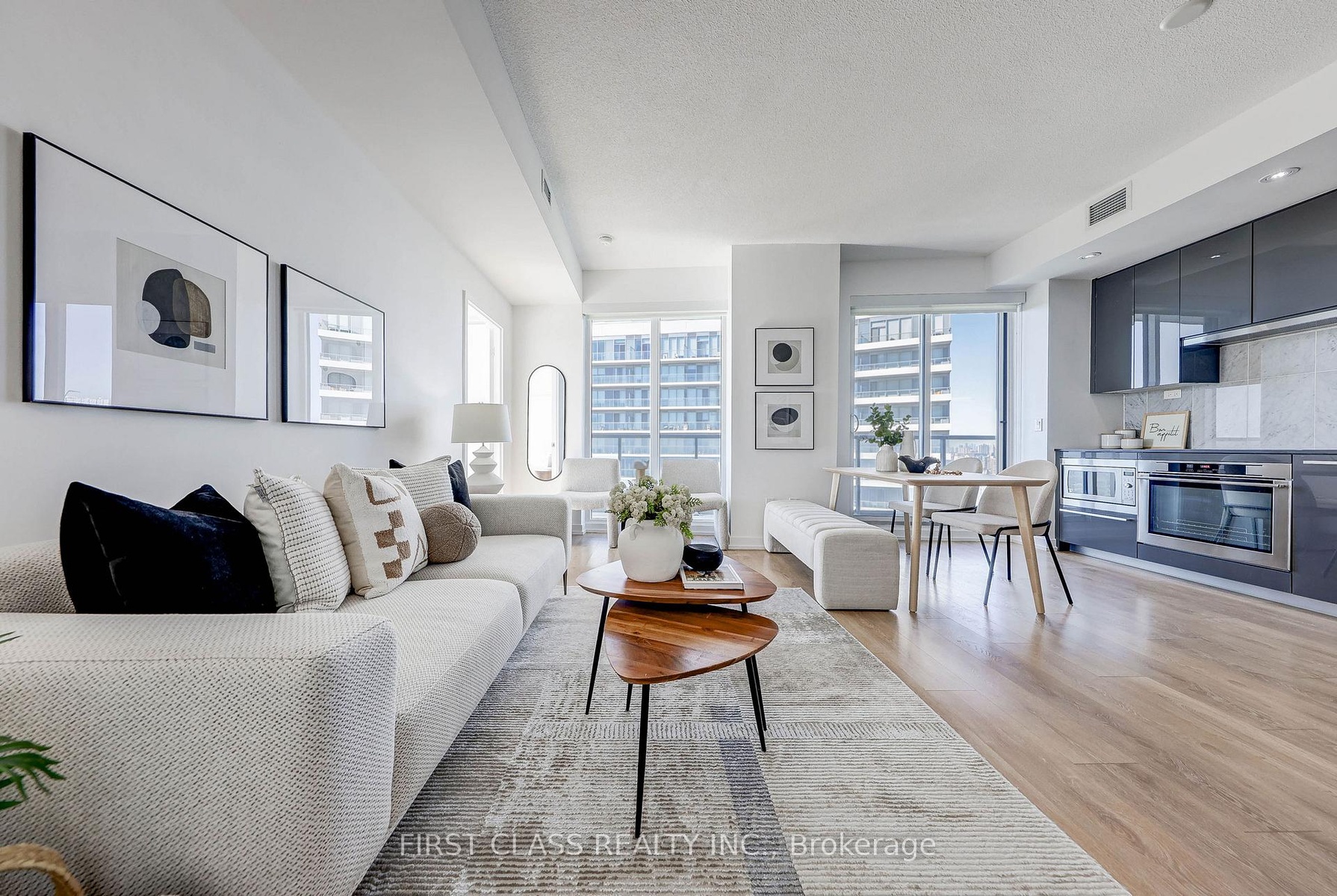 Your search is over! This stunning top-floor corner unit offers unbeatable south and west exposure with breath-taking city views, including the iconic CN Tower. Featuring 820 sqft of smoothly designed space, this 2-bedroom, 2-bathroom suite comes with 1 parking and 1 locker. No long hallways, no dark bedrooms just a bright, super functional layout that feels open and welcoming. Floor-to-ceiling windows flood the home with natural light, while the modern kitchen with built-in appliances flows seamlessly into the spacious living and dining areas. Step out onto the large balcony and enjoy incredible sunsets and city lights.