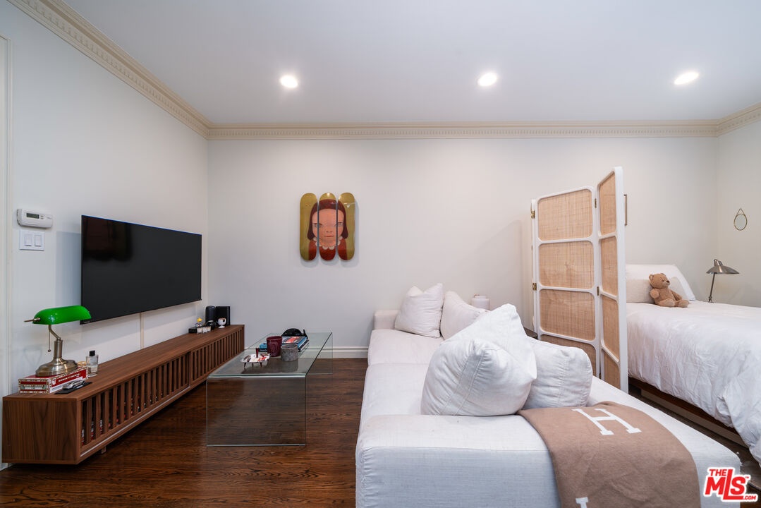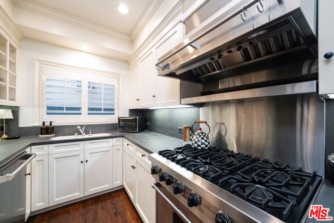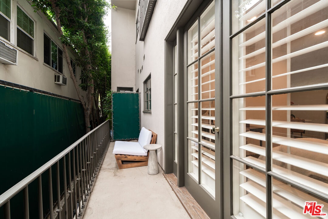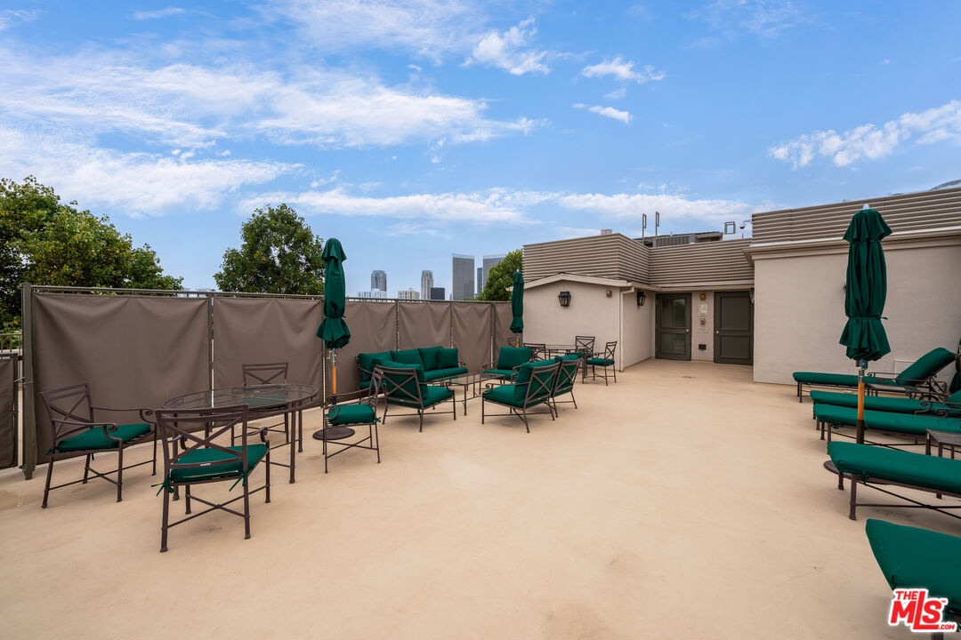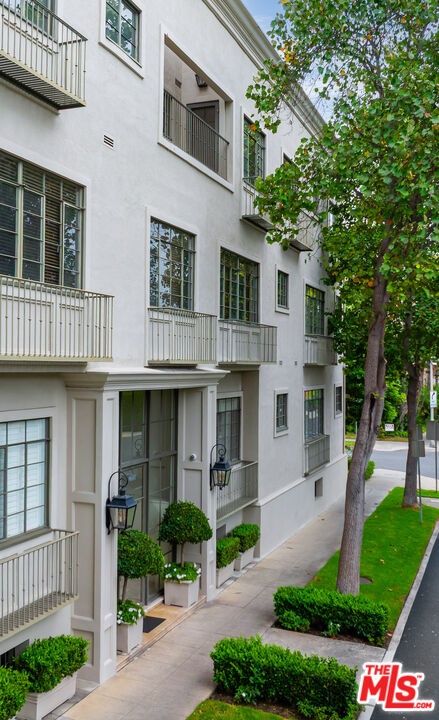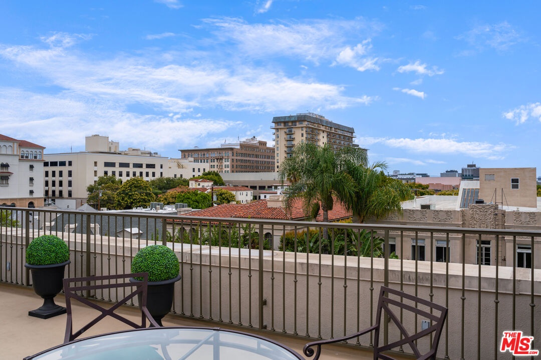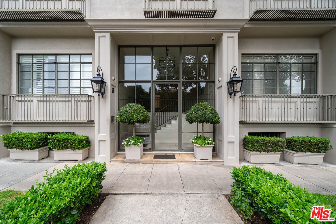 Manhattan-Style Pied--Terre sophisticated and upscale, this remodeled residence is located just steps from world-class shopping and dining, moments from Saks Fifth Avenue, the Beverly Wilshire Hotel, and Rodeo Drive. Designed to perfection by acclaimed interior designer Waldo Fernandez and architect Peter Choate, the stylish condo features a gourmet galley kitchen with a Viking six-burner stove, bluestone marble countertops, stainless steel appliances, and rich solid oak hardwood floors. High ceilings with crown molding, a luxurious marble bath, and French doors with custom plantation shutters create an elegant, inviting atmosphere. Additional highlights include a private terrace, Bosch washer/dryer, central heat & air, and two tandem parking spaces with locked storage in a secure gated garage. The building offers a rooftop deck with sweeping Century City and Beverly Hills views, concierge-level security with cameras, and elevator access. The tenant is currently occupied until the end of 2026, as per the lease agreement.