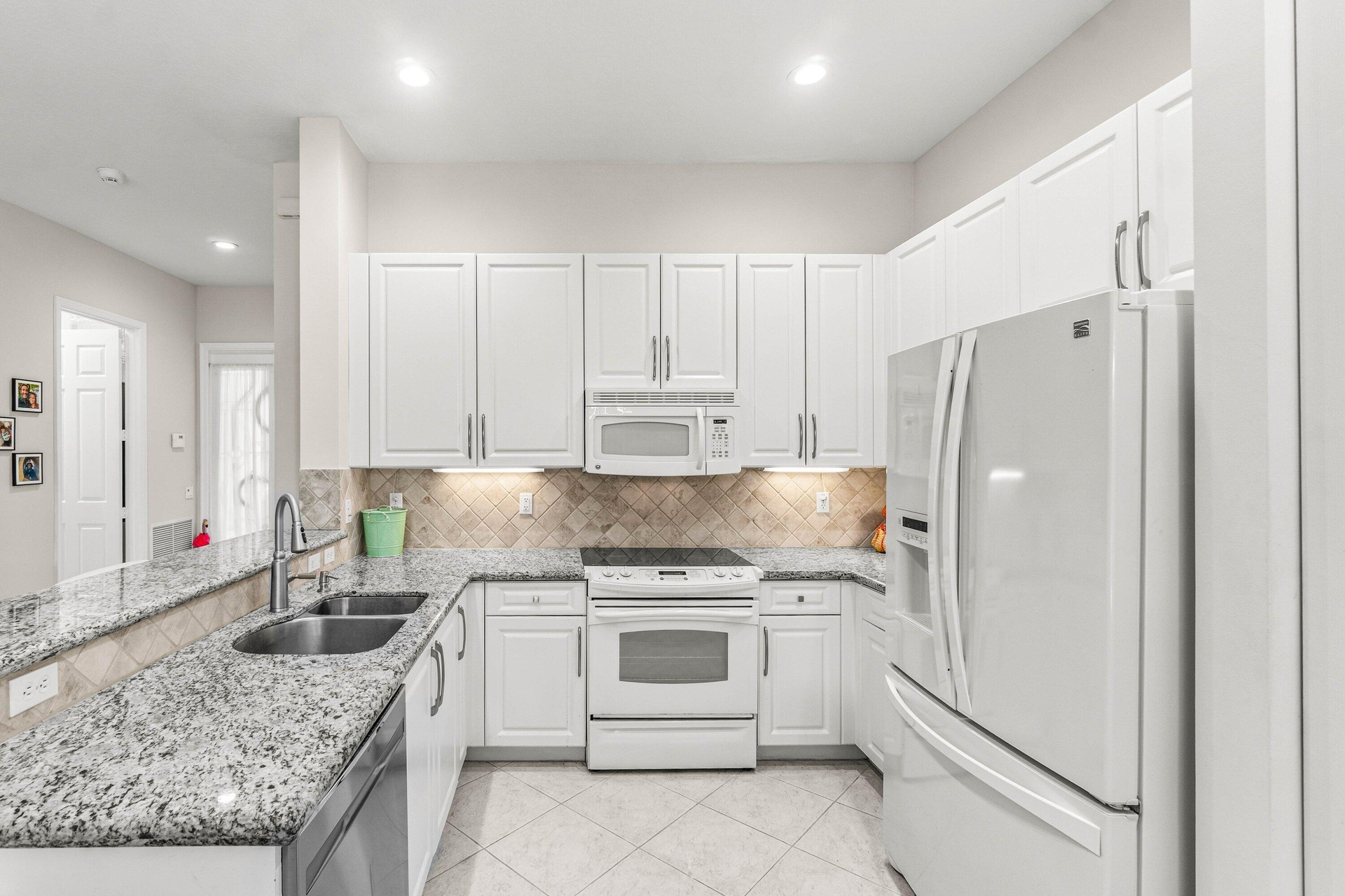 DescriptionLovely Catherine model features 2 bedrooms, 2 baths and a fenced in pool surrounded by landscaping providing beauty and privacy. Upgrade highlights include neutral tile on a diagonal throughout (no carpet), Carrier AC and water heater installed in 2020, tons of kitchen and bath upgrades such as glass door shower enclosures with tile to ceiling, a beautiful custom barn door at closet/bathroom entry in Primary bedroom, upgraded lighting, fan fixtures and hi hats throughout, newer washer and dryer, upgraded patio and pool deck pavers installed on a diagonal, widened walkway pavers with no front step, gutters and more!