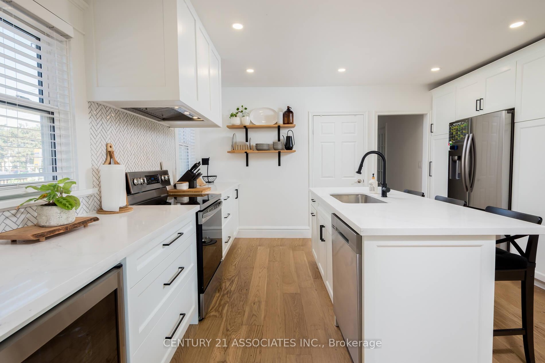 Welcome to this beautiful Grimsby four bedroom, one and a half storey detached home. It's been beautifully updated and renovated throughout. The front vestibule with heated floors leads you into the sunlit main floor which has been opened to create a wonderful open concept modern entertainment space with a stunning renovated eat-in kitchen. The kitchen offers ample cupboards and pot drawers, quartz counter space, huge centre island / breakfast bar, stainless steel appliances, coffee bar, pantry, and more. The plentiful windows create a bright and airy feel. Main floor primary bedroom and second bedroom (or home office). Beautiful oversized renovated main floor full bathroom with ceramic floors and heated towel rail/rack. Upstairs you will find two additional bedrooms and a wonderful renovated three-piece bathroom with heated towel rail/rack. Your own private backyard oasis with deck plus an outside bar featuring a live edge counter, plus a shed, and hot tub under a beautiful shade tree! The unfinished basement provides plenty of storage space plus the laundry area. You're just a 7 minute walk to Main Street Grimsby with all the shops and restaurants you will need. A 1 minute walk to the VIA station! A short 3 minute drive to Nelles Beach Park. A 15 minute drive to the NEW Confederation GO Station in Stoney Creek (opening end of Oct). Easy QEW access!