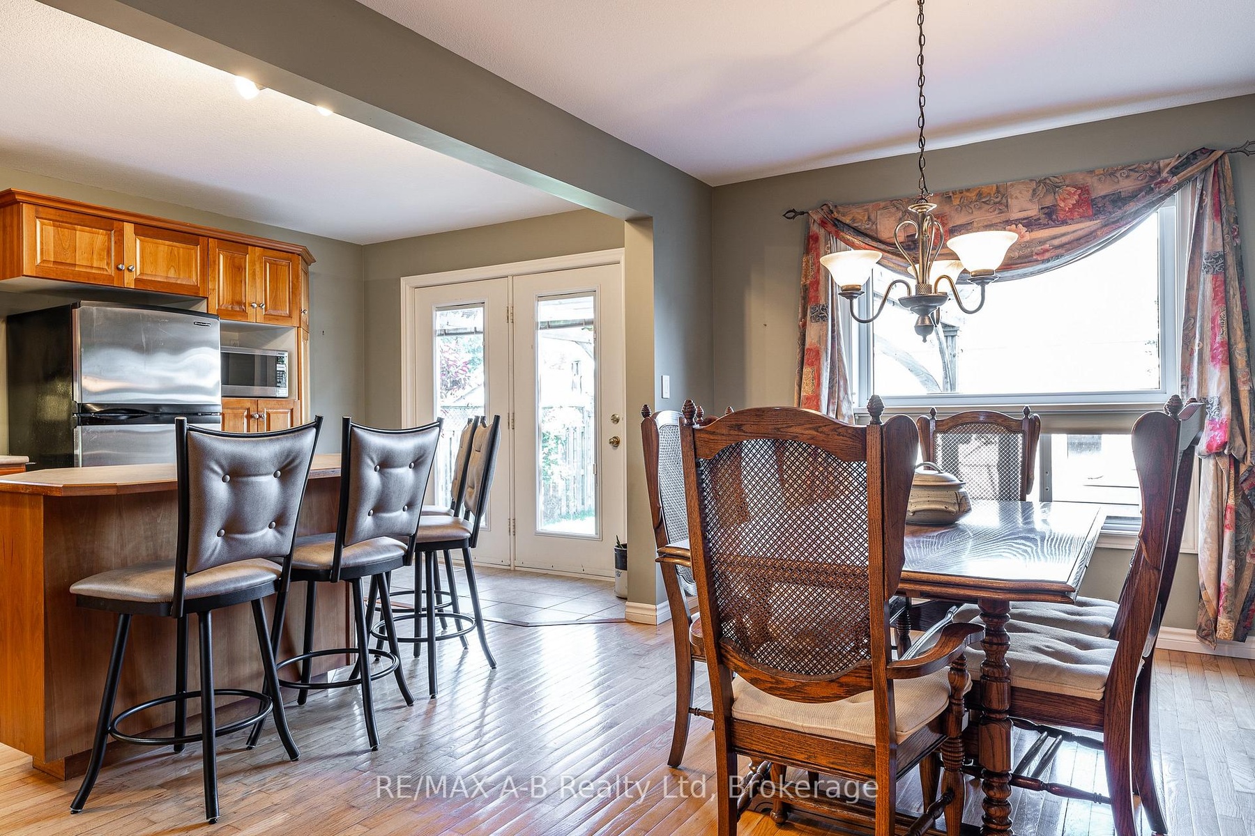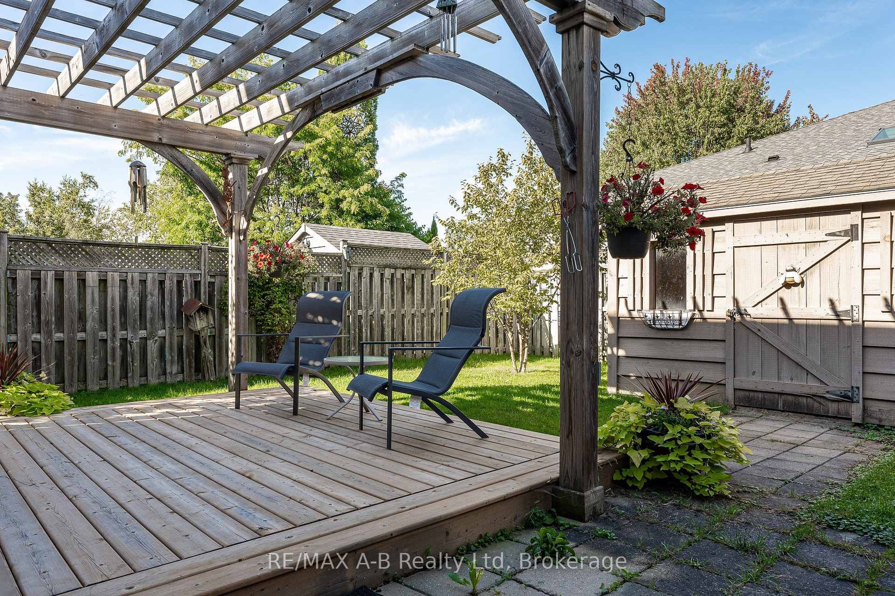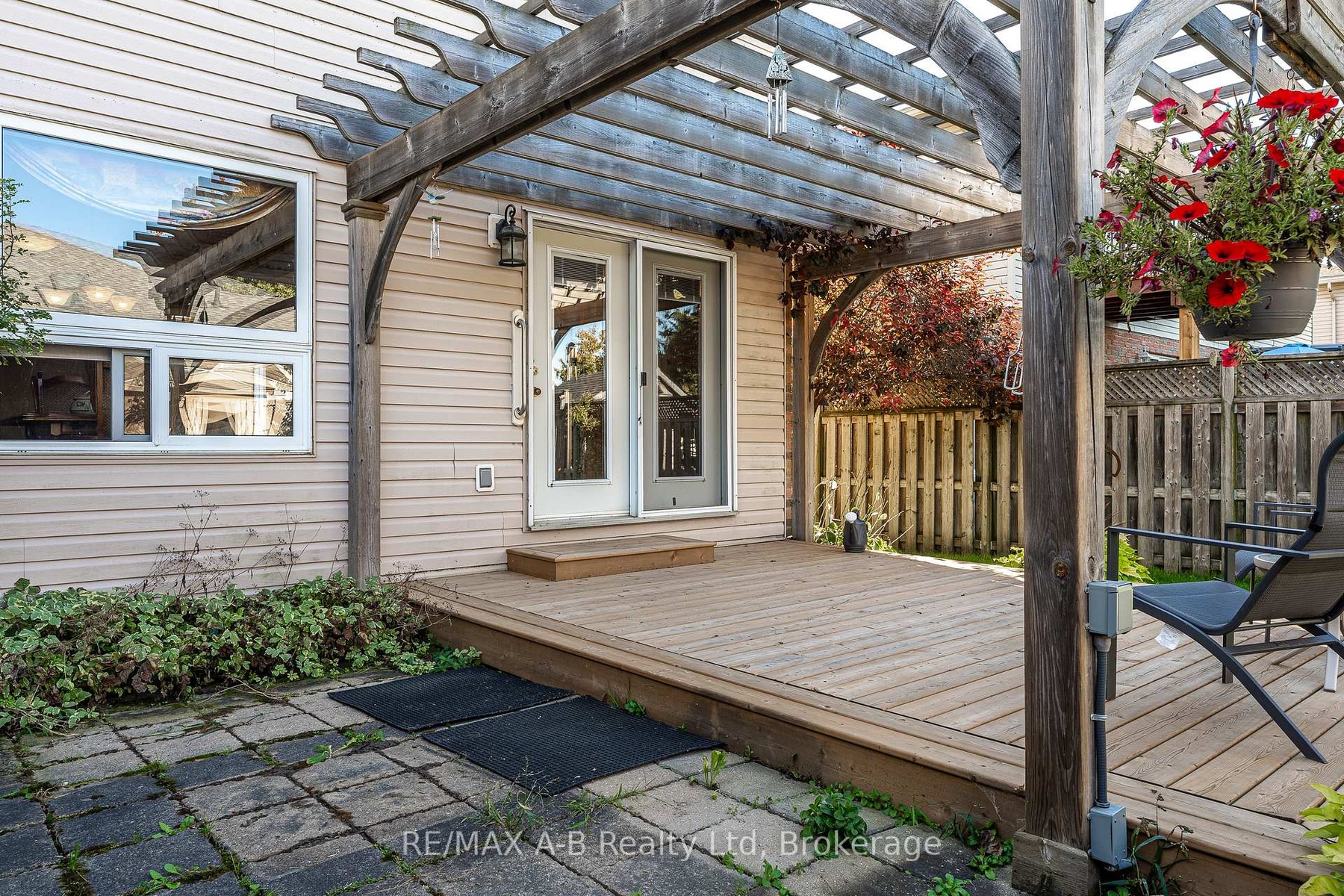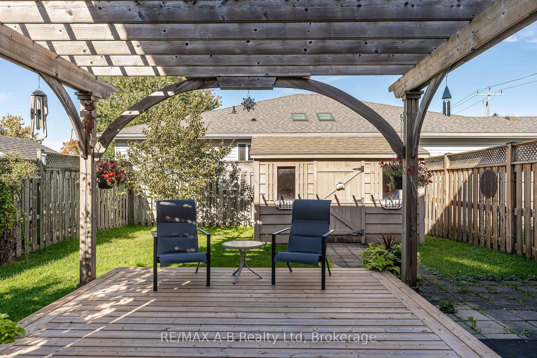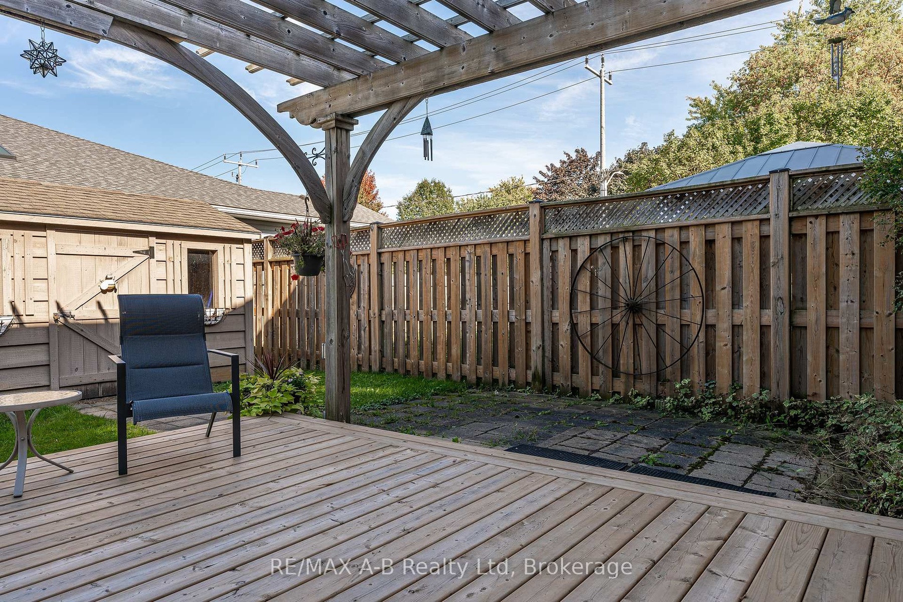 Welcome to 384 Douglas Street, Stratford. This spacious and well-appointed three-bedroom, three-bathroom semi-detached home offers the perfect blend of comfort, convenience, and style. Nestled in a highly desirable, low-turnover, family-friendly neighbourhood within the Avon School Ward, the property is also close to Stratford Intermediate School and Stratford District Secondary School. A welcoming front entrance with ceramic flooring and a double closet leads to a convenient two-piece washroom and into the generous living and dining area. Adjacent to the living and dining rooms is the bright, open kitchen featuring maple cabinetry, an updated backsplash, and a large island with seating for four. Sliding doors open to a private, pergola-covered deck and landscaped backyard perfect for outdoor entertaining. Upstairs, an expansive great room with soaring ceiling and large south-facing window provides a warm retreat with a gas fireplace, custom built-in cabinetry, and updated solid oak floors that extend through the hallway. Three comfortable bedrooms, each with ample closet space, are complemented by a modern four-piece bath. The finished basement expands the living space with a large family room, complete with a cozy gas fireplace, making it an ideal year-round gathering. A three-piece washroom with a shower, ample storage, and a cold room round out the lower level. Additional features include a double garage with parking for four vehicles on the newly sealed driveway, a fully fenced and beautifully landscaped yard, and a generous garden shed. Close to shops, parks, walking trails, and just a short stroll to Stratford's vibrant downtown, this home is perfectly situated for everyday living and leisure.
