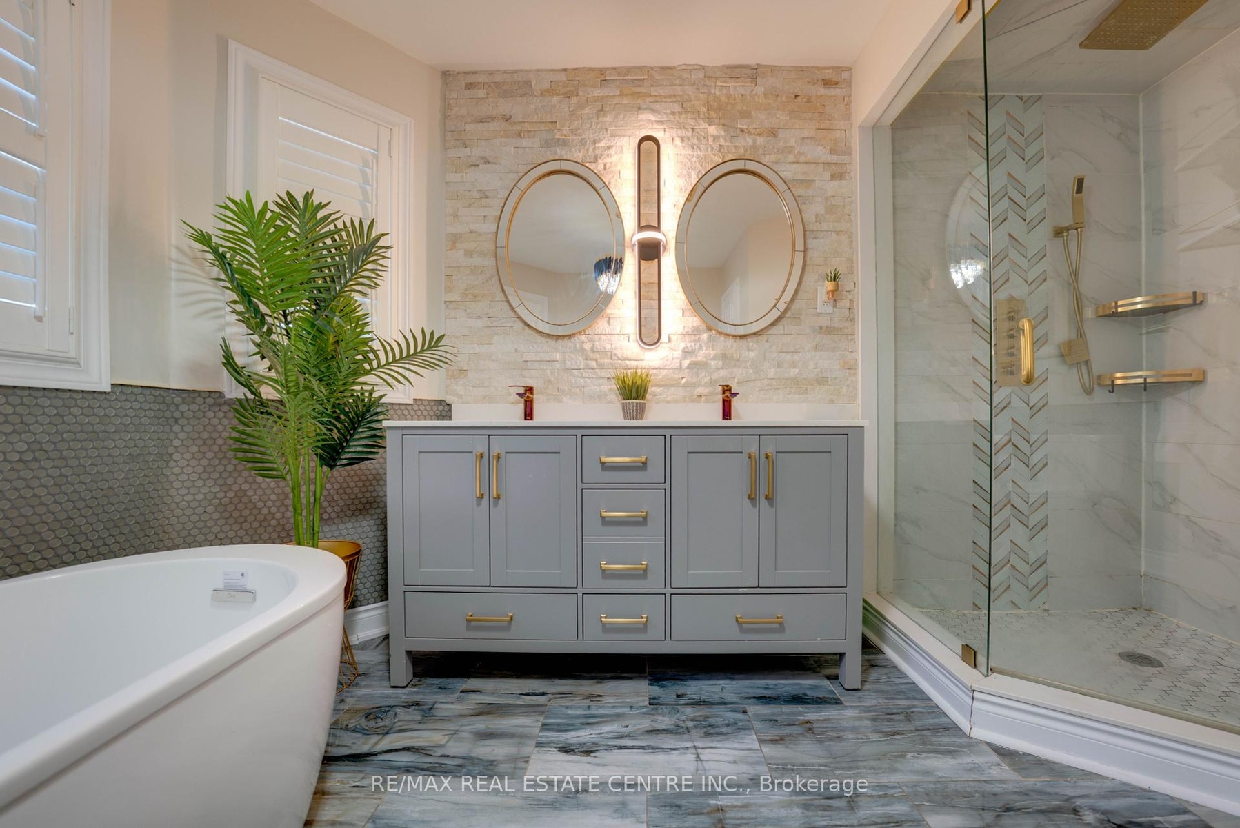 Stunningly Renovated Home with Income Potential! Over 200K in renovations & upgrades! 10 min to GO STN & Hwy 410! Step inside this beautifully updated residence, where no detail has been overlooked.. The heart of the home is the renovated kitchen (2020) featuring quartz counters, stainless steel appliances, a smart fridge, and wine cooler. Formal living and dining spaces are perfect for entertaining, accented by new flooring, potlights, smooth ceilings, California shutters, and a stunning feature wall with fireplace. The upper level also offers new flooring (2022), wrought iron railings, and a luxurious primary suite with a spa-inspired ensuite complete with a free-standing tub, double sinks, gold hardware, and a designer feature wall. Major updates provide peace of mind: new windows (2023), AC (2021), tankless hot water (2021, rental), and an updated roof (2017).The basement apartment (2023) comes with a Legal Separate Entrance and is ideal for extended family or rental income, boasting 2 bedrooms, its own laundry, potlights, an upgraded bath, and stainless steel appliances. Enjoy outdoor living with a new front door, energy-efficient black-pane windows, a backyard deck & pergola, and a concrete patio & walkway. This home blends timeless upgrades with income potential. Move-in ready and made for modern living!