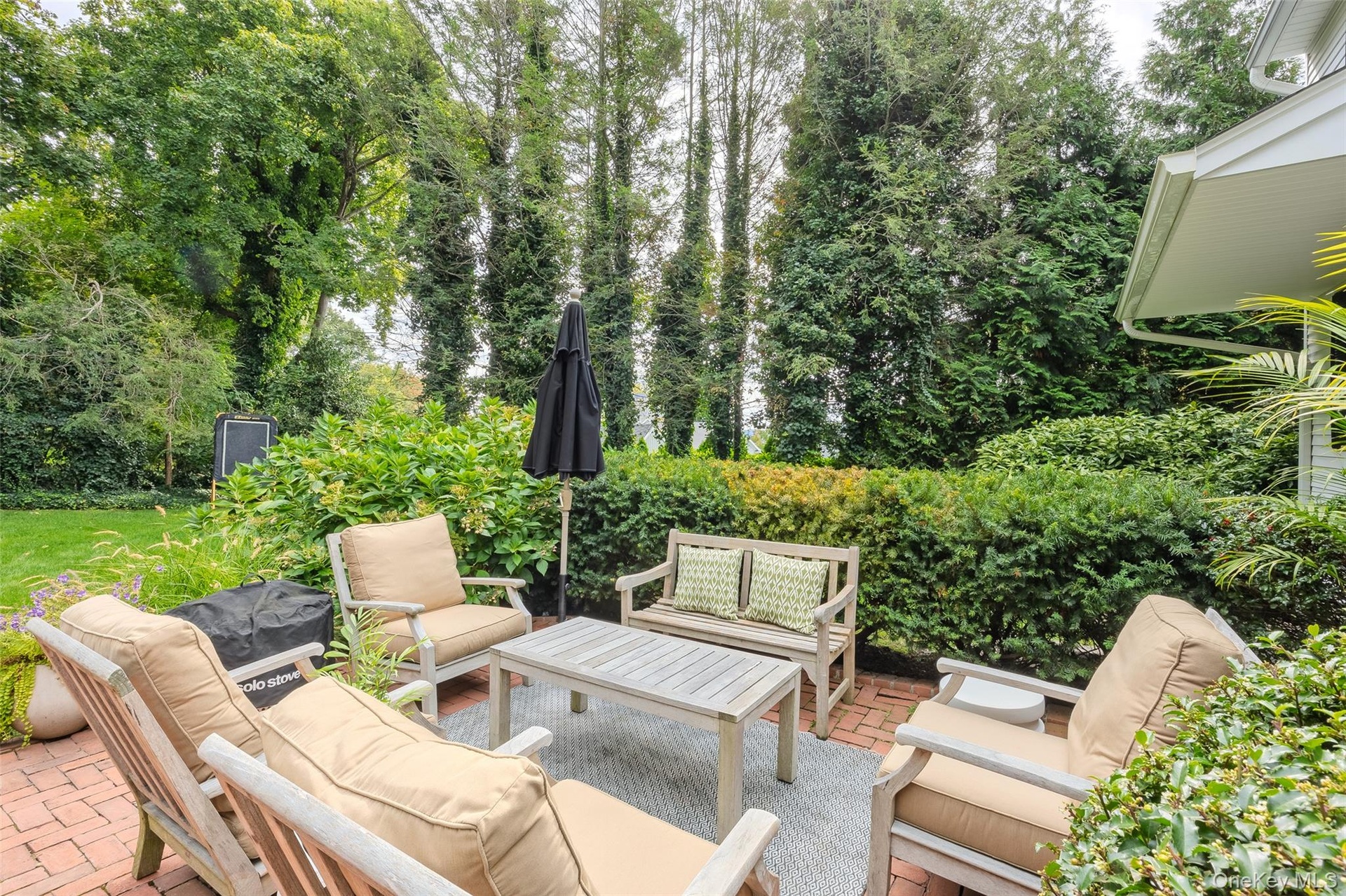 Traditionally elegant brick, 4 bedroom, 3.5 bath center hall Georgian colonial located in the much sought after enclave of Wincoma in Huntington Bay. This charming home is beautifully set on a flat half acre of landscaped property with close proximity to the private Wincoma beach and a short distance to the association dock. The gracious foyer with its sweeping staircase provides the loveliest preview of the character and style that abounds throughout this very special residence! Entry hall features two closets, tiled flooring, convenient half bath and access to the living room and dining room on either side. The sunken formal living room, perfect for entertaining, is light and bright with a large bay window. The formal dining room is generously sized to accommodate all your guests. The fabulously outfitted chef’s kitchen is updated with Woodmode cabinetry, granite countertops and high-end appliances including; Wolf gas stovetop, Subzero fridge, Dacor oven and Bosch dishwasher. Peninsula seating, a dining area, tile flooring with radiant heat, warming drawer, ice maker and wine fridge are additional attractive and functional features. Sliders in the kitchen provide access to the private backyard. Next to the kitchen, the large mudroom offers amazing custom built-in storage organizer and entry to the two-car garage, along with an updated full bathroom with shower stall. Off the kitchen, an inviting den area with custom built-in cabinetry, detailed millwork and French doors that open to the brick patio. This space also features an additional sunken living area anchored by a wood burning fireplace and a second set of interior French doors leading to the living room. Upstairs; four spacious bedrooms all with ample closet space. The well-appointed primary suite offers a double closet, a large custom walk-in closet and updated full bath with double sink vanity, jetted tub and steam shower. Three additional bedrooms equipped with custom closet systems and a hall full bathroom offers tub shower and double sink vanity complete the second floor. The full basement provides wonderful additional space with endless possibilities and offers a separate laundry room, storage and utilities. A picture perfect private fenced yard and brick patio awaits for al fresco relaxation and entertaining. Wincoma private beach just down the street is yours to enjoy year-round - swim, play and participate in association social events on the waterfront! Additional features of this home include; 10 zone in ground sprinklers, updated Andersen windows, 2 zone central air conditioning, 3 zone heat, high efficiency oil burner, indoor/outdoor speaker system, separate hot water heater, automatic turn on gas generator, updated cesspool, 150 amp electric, updated roof and gutters, updated fencing, driveway and stacked stonework. Wonderful opportunity to live in the Incorporated Village of Huntington Bay, which includes a town hall and separate police department, in addition to being a few miles away from Huntington Village and the Long Island Railroad. Welcome home!
