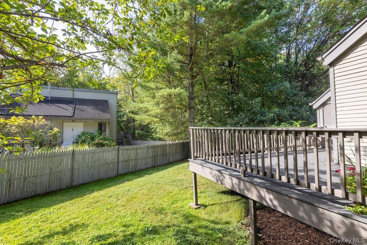 Prized for its unique location, this corner townhome is placed undeniably among the very best settings within Dobbs Ferry's sought-after 20-acre community, Hunters Run! 1001 Hunters Run stands out for its uncommonly spacious and private fenced-in backyard and clubhouse proximity. Take the short pathway to the association swimming pool - like having a pool in your backyard without any of the maintenance worries. You enter a soaring, skylit open plan living room/dining area with 18’ vaulted ceilings and finished with hardwood floors. A wood-burning fireplace adds warmth, while the windows reveal a countryclub-like view of the pool and the lush woodlands of Chauncey Park. Glass sliders in the dining area open to a generous south-facing full-width deck looking out toward the trees. From there, step down to the private backyard, bordered by shrubbery and picket fence. An eat-in kitchen with generous counterspace invites plenty of eastern sunlight streaming in. Upstairs, a hall landing is bright and airy, overlooking the living room. A primary suite includes a spacious bedroom, two large closets, and ensuite bath with separate lavatory area. A second bedroom and hall bath complete the level. Bonus: an sprawling estimated 600 SF finished lower level is perfect for recreation, exercise or home office. The 9.5’ high attached garage offers plenty of storage, even though the walkable location of Hunters Run makes a car less essential. Wander to Rivertowns Square for dinner and a movie, shop in the organic market, hike through Chauncey Park, or bike the South County Trailway just beyond. With a 40-minute train ride to GCT from downtown Dobbs and award-winning Ardsley schools, this home can be your happy haven in the Rivertowns. An annual $1500 STAR tax reduction is available for homeowners who qualify.