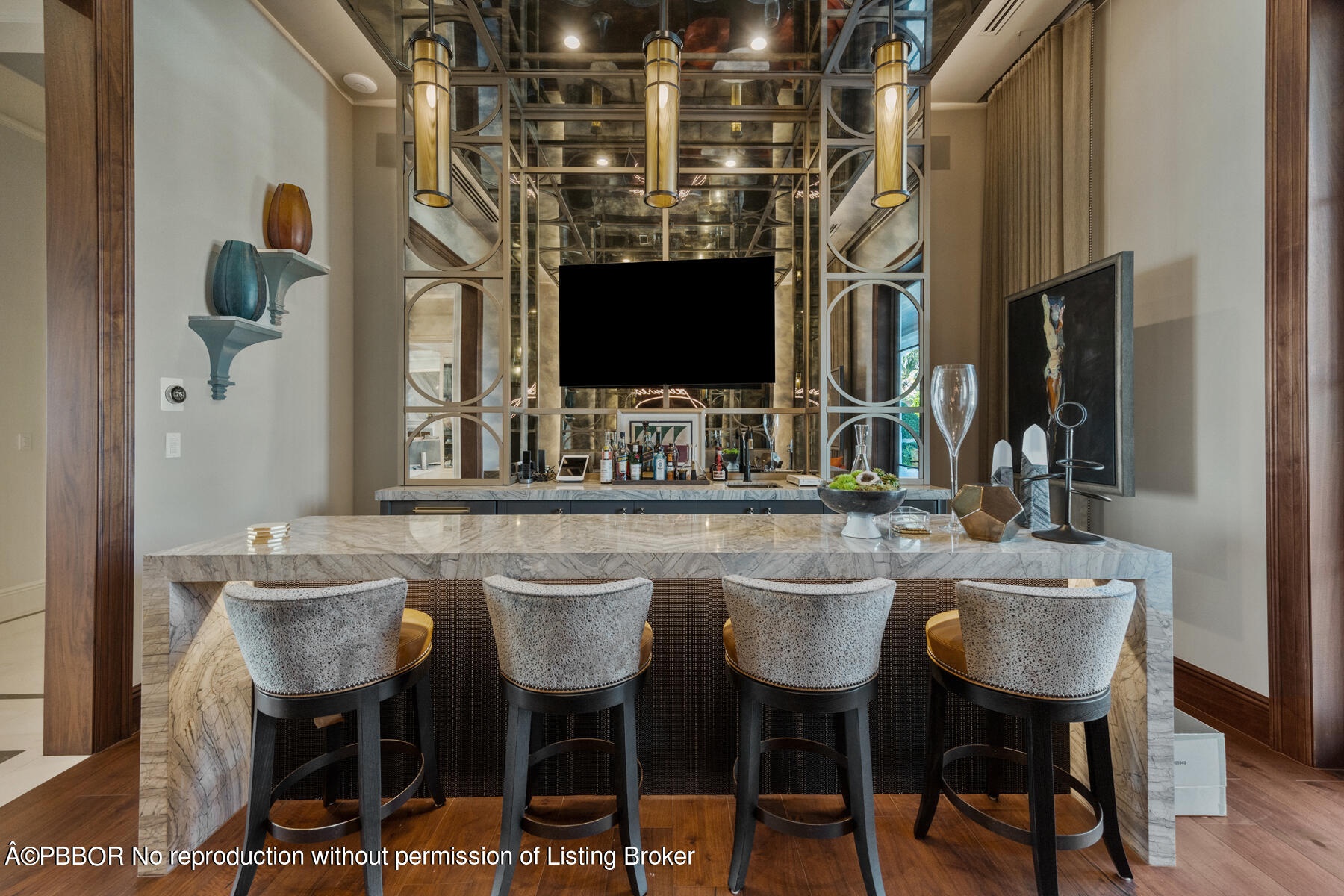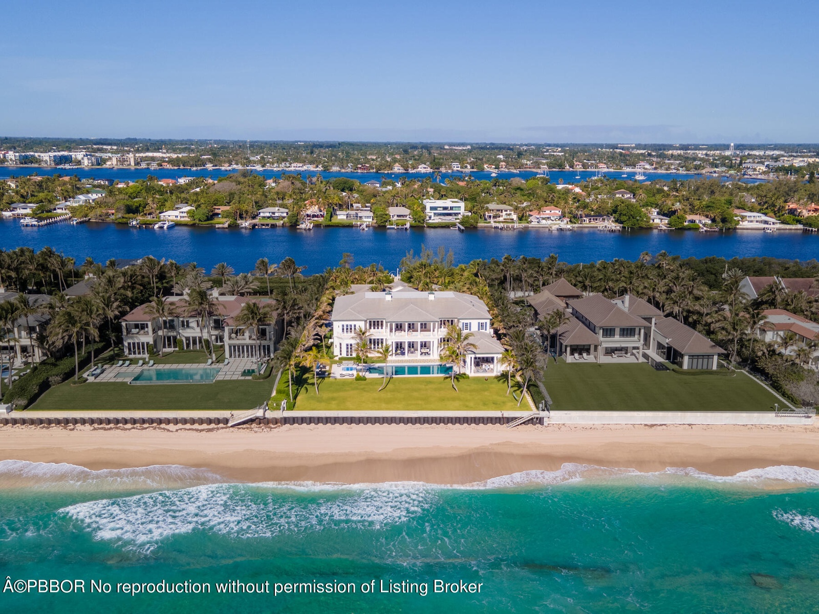 This ocean to lake coastal property is unlike any other, where 150 feet of ocean frontage meets the elegance of new construction completed in 2020. Immediately upon entering, you're drawn to the eastern facing waterviews in the living room filled with sunshine. This home offers several well-appointed bedrooms and baths designed to offer space, comfort and privacy. Additionally you will find a temperature controlled wine room, his & her powder rooms, gym and spa room and a most inviting bar and lounge. Outside, discover several thoughtfully landscaped gardens, verandas and a summer kitchen perfect for enjoying ocean breezes or head over to the intracoastal for sunsets on the dock which houses two lifts. This oceanfront compound includes two additional structures beyond the main residence; a surveillance and guard house for enhanced security and state-of-the-art stainless steel chef's kitchen, and a charming guest house. This property presents a rare opportunity to indulge in everything that represents coastal living.