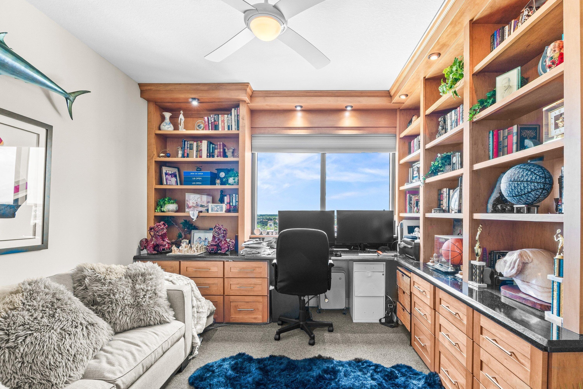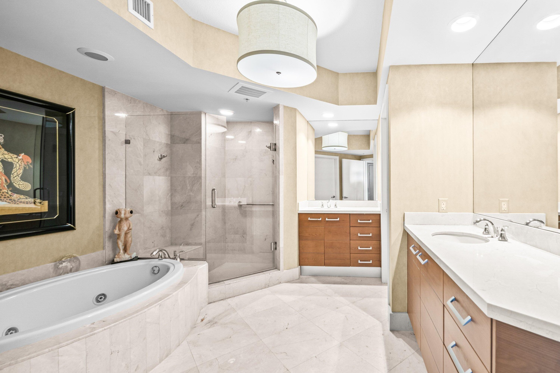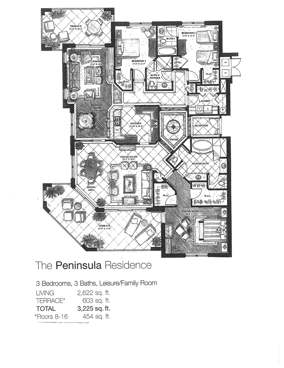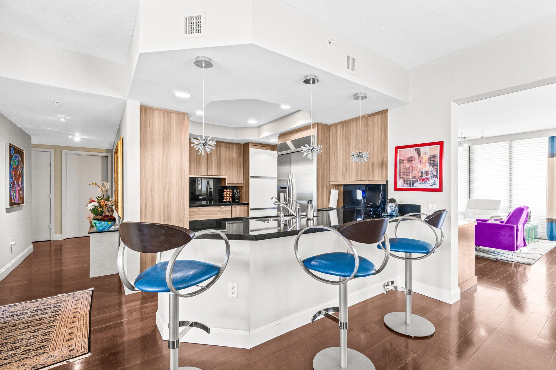 Perched on the 12th floor, this Peninsula model residence at Landmark at the Gardens presents an elegant 3-bedroom, 3-bath layout designed for refined living. The gracious floor plan opens with a formal living room, while the gourmet kitchen--flowing seamlessly into the breakfast area and adjoining family room--creates the perfect setting for both intimate mornings and lively gatherings. The expansive primary suite offers direct balcony access and a spa-inspired bath with dual vanities, a Jacuzzi soaking tub, and private water closet. Secondary bedrooms are equally well-appointed, each with access to their own private bath. A sweeping balcony showcases tranquil lake views and the glittering lights of Downtown at the Gardens, complemented by an additional terrace off the family room.....