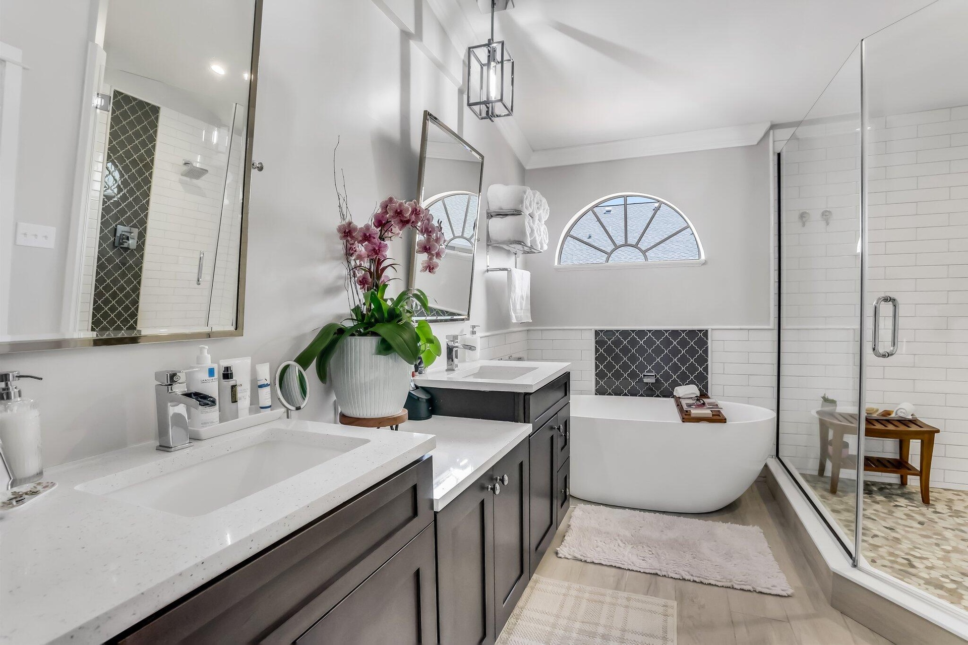 One-of-a-kind in this community, this Boca Raton townhome has been elevated with upgrades far beyond builder standards. Recent 2024 improvements include a new roof, A/C, and hot water heater. The kitchen features quartzite granite counters, soft-close cabinetry, herringbone backsplash, stainless steel appliances, and a walk-in pantry. Upstairs, the primary suite offers vaulted ceilings, bamboo flooring, a custom closet with oversized washer/dryer, and a spa-like bath tub + double rain shower. Two additional bedrooms include one with floor-to-ceiling built-ins and desk. Community amenities: 24-hr security, pools, hot tub, tennis, racquetball, basketball, clubhouse, playground, and private path to Boca Center shops & dining.