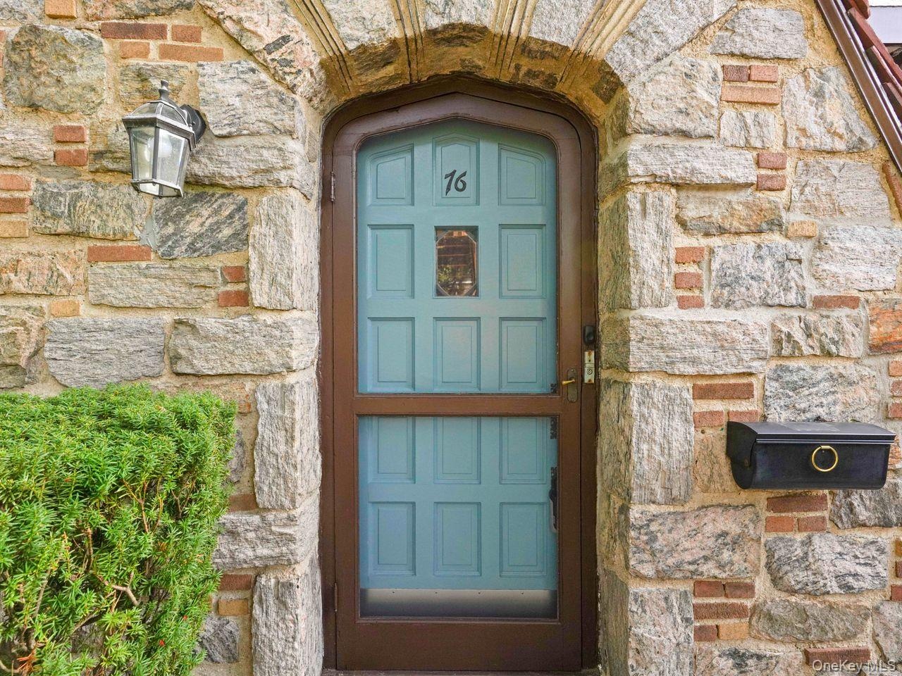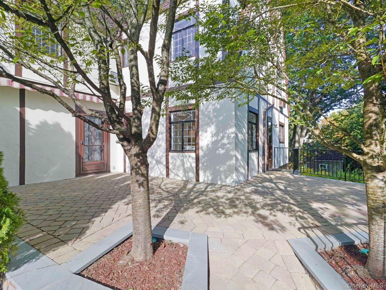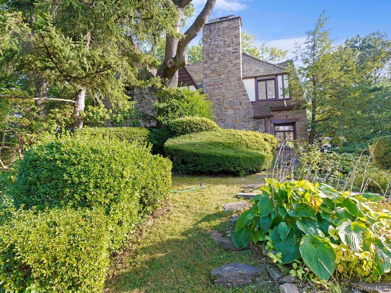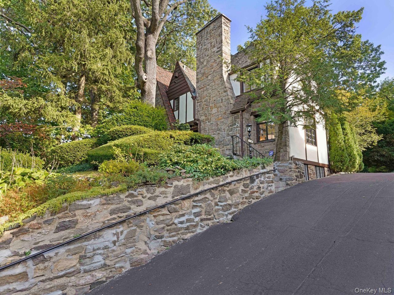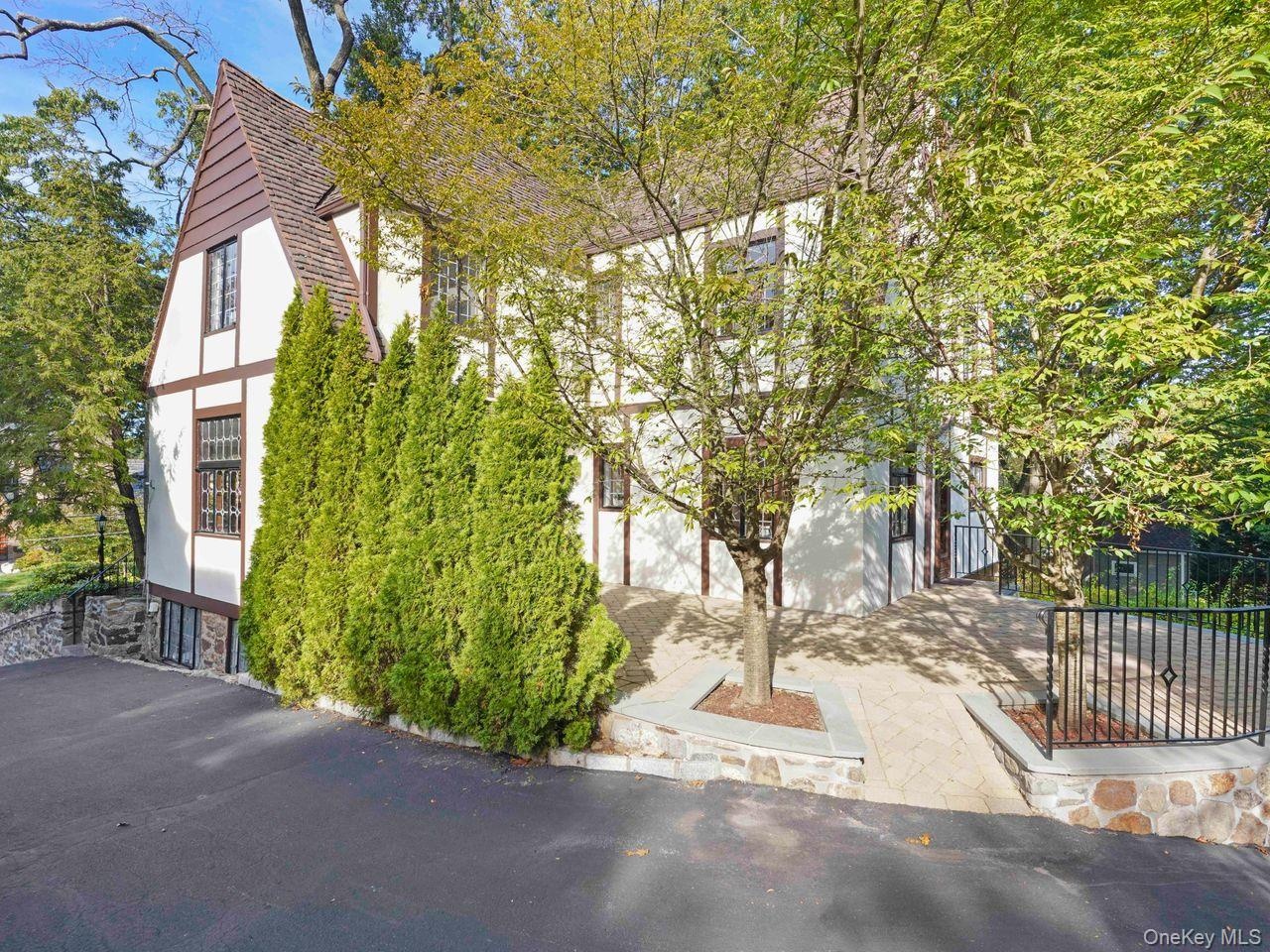 CASTLE ON THE HILL – Welcome to 76 Vaughn, your nearly 3,000 sf, 5-bedroom Tudor home where old world charm meets modern conveniences. It is within close proximity to the National School of Excellence, Daniel Webster, one block to the serene Glenwood Lake & most delightfully it is a 15 minute walk to the Pelham Metro North Train station giving you quick access to NYC. The primary suite features soaring 11-foot ceilings, period sconces, a spacious walk-in closet, & a luxurious ensuite bath with 2-person whirlpool tub, two sinks, and stand-alone glass shower. 3 additional bedrooms share a full bath on the 2nd floor, while the main floor offers a versatile office/den/bedroom with an adjacent half bath (originally a full bath, plumbing intact for easy conversion). The living and dining rooms are bathed in natural light through large windows and French doors, with a wood-burning fireplace in the huge living room and hardwood floors adding warmth throughout. The dining room easily accommodates 12 or more guests, flowing naturally into the eat-in kitchen with granite-topped island seating for four, abundant counter space, beverage nook, & pantry with pull-out, self-closing drawers—ideal for both everyday living and entertaining. The garden level provides a brand-new high-efficiency boiler with a 10-year warranty, water heater, brand-new front-loading washer, a dryer, potential for a powder room, & a large, finished family room with stained-glass windows, a surround-sound system, a second wood-burning fireplace, and generous storage. Adorned with classic Tudor details, the home boasts exposed nine-foot beamed ceilings, cedar closets, casement leaded-glass windows with decorative stained-glass accents, stucco walls, a pitched Spanish tile roof, and wrought-iron banisters. Modern updates include stainless-steel appliances (Bosch dishwasher, GE refrigerator, stove & microwave), seamlessly blending old-world charm with contemporary comfort. Outdoor living is just as inviting. French doors open onto a charming back terrace featuring a remote-controlled retractable Sun Setter awning, two cherry blossom trees, plenty of space for alfresco dining, and a hilltop view of a beautiful yard adorned with perennials and annuals as well as the surrounding neighborhood, while a front slate patio overlooks a perennial garden offering shade and additional hilltop views. Highlights include 2 fireplaces (living room & family room), paved terraces in both front and back, and a gently curved shared driveway leading to a two-car garage. Homeownership includes co-ownership of a shared snow blower with neighbors. 76 Vaughn combines modern convenience with timeless Tudor elegance—perfect for gathering, entertaining, or simply relaxing in your private hilltop retreat. There is nothing to do but drop your bags and just live!