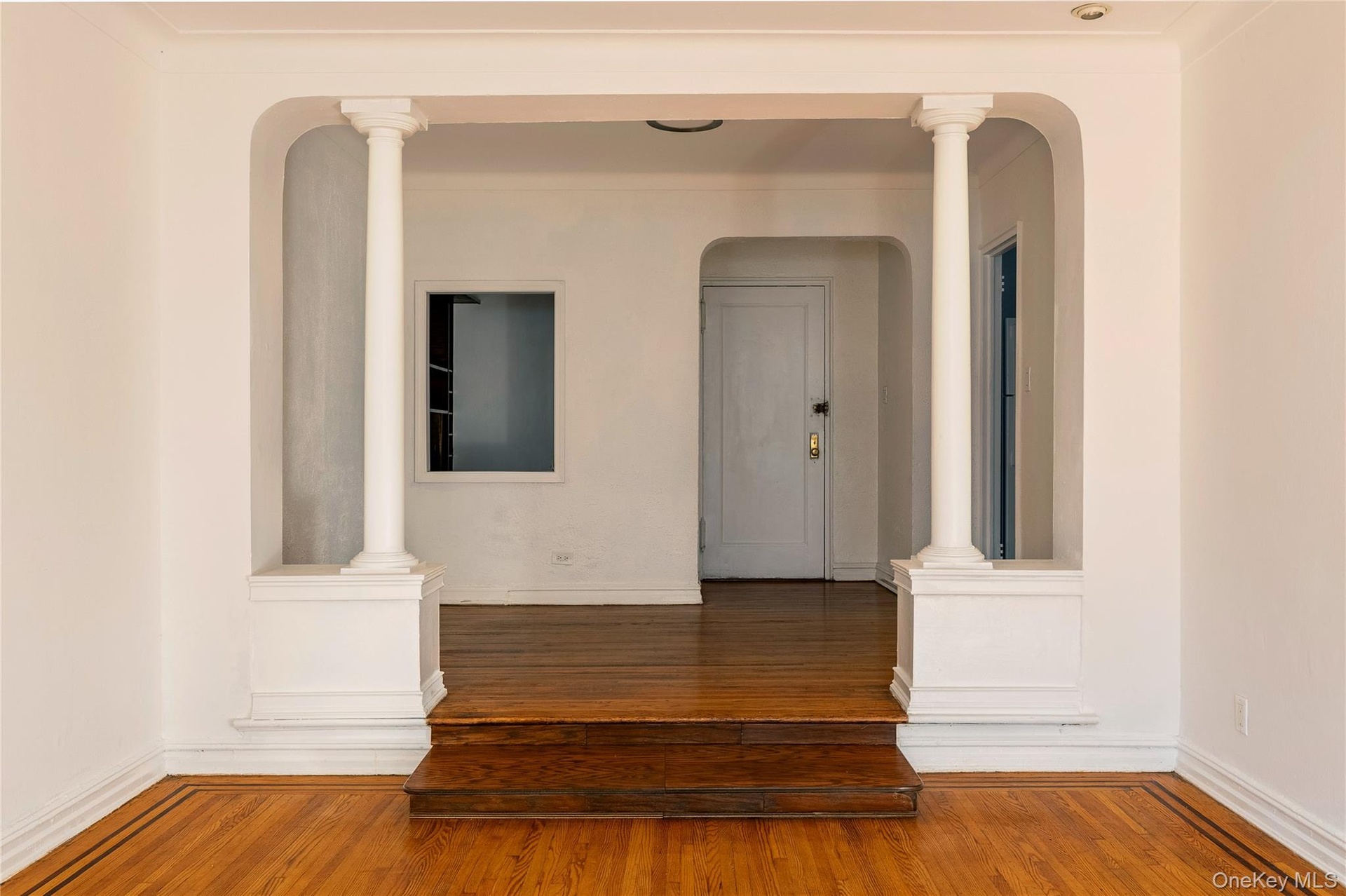 - Spare room with wood finished floors and ornate columns