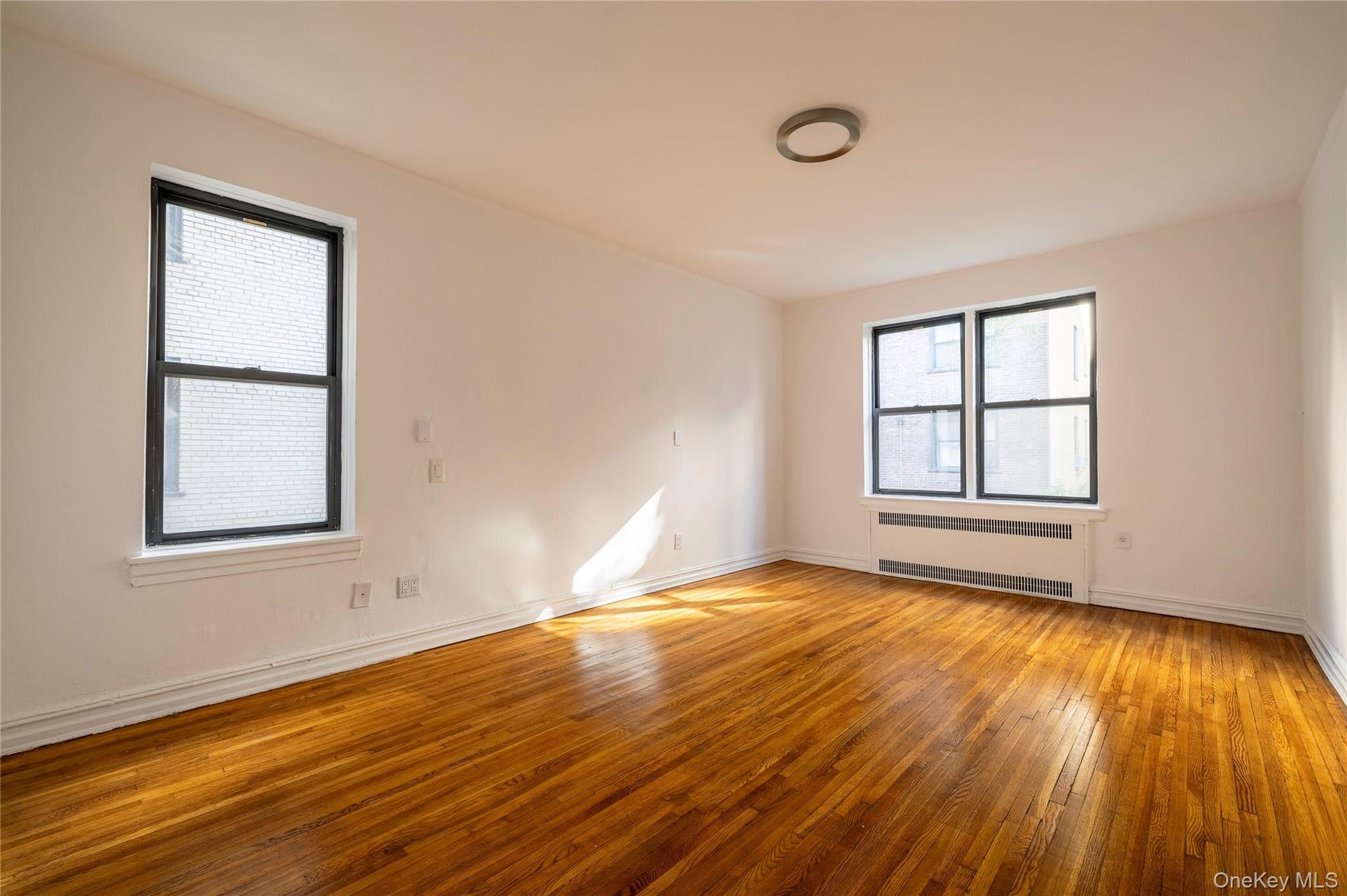- Spare room featuring radiator and light wood-style flooring