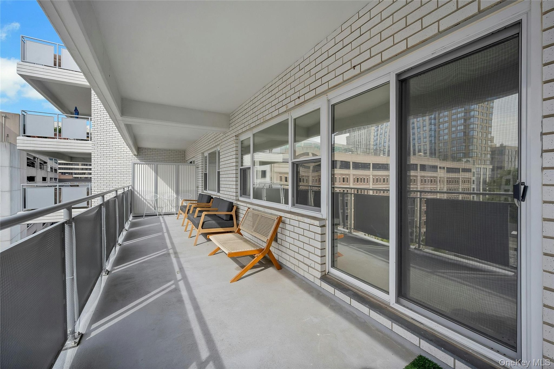 Discover unparalleled elegance at 300 Martine Avenue a masterfully renovated 1-bedroom, 1.5-bath in the prestigious Cameo House in the vibrant heart of downtown White Plains. Spanning an impressive 1,100 square feet, this unit redefines luxury with its sunlit interiors, high-end finishes, and expansive layout designed for open style living. Refined comfort where an open-concept living and dining area, accented by striking beamed ceilings and modern ceiling fans, seamlessly connects to a state-of-the-art kitchen. The kitchen is a culinary masterpiece, featuring a stunning waterfall center island, elegant subway tile backsplash, brushed nickel hardware, and sleek stainless steel appliances, all illuminated by contemporary lighting fixtures. The space offers natural light, creating an inviting ambiance for both relaxation and entertaining. A private 181-square-foot balcony, offering serene western views and a quiet retreat, sets the stage for unforgettable sunsets and tranquil gatherings, blending indoor elegance with outdoor serenity. The generously proportioned bedroom boasting a custom walk-in closet and a renovated en-suite bathroom that exudes spa-like sophistication. A stylishly updated half bath ensures convenience for guests, elevating the home’s functionality without compromising its chic aesthetic.