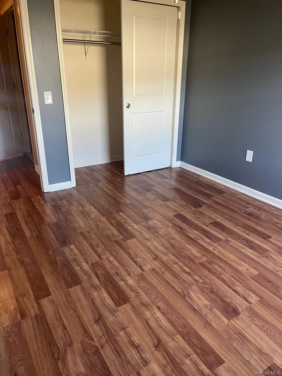 - Unfurnished bedroom featuring dark wood-style floors and a closet