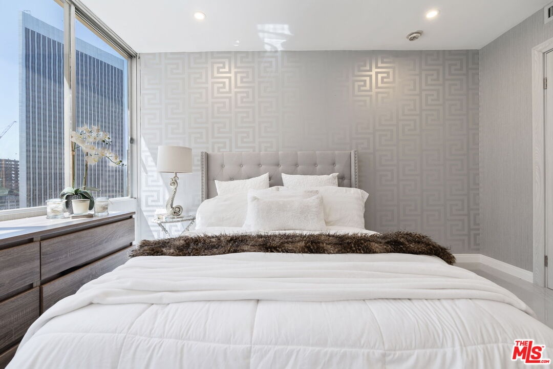 VIEWS for days from this beautiful Penthouse unit in the most desirable stack of one of the premiere, full-service buildings in the heart of Century City. Luxury 1 bedroom remodeled condo in stunning Century City. Totally renovated with spectacular 180-degree unobstructed views of Los Angeles and Beverly Hills, from the ocean to the Hollywood sign. Cucinesse Srl Italian cabinetry, Italian tile floors, Miele appliances, Cristallo quartzite countertops, designer wall coverings, wine storage, fire place, central heating, and air conditioning. Amenities include 24-hour valet and guest parking, doorman, houseman, switchboard, large security staff, state-of-the-art fitness center, business center, saunas, huge, heated pool and sun deck, tennis court, private pet play-land, electric car charging stations, valet dry cleaning, vehicle washing, acres of flower gardens and grassy lawns. The hallways in the building have been recently remodeled. 1 block to the new light rail subway station and Westfield Regional Mall, markets, movies, dining, golfing, city park, 4 blocks to Rodeo Drive, 20 minutes to LAX, downtown LA, and Cedars Sinai Medical Center. 10 minutes to UCLA, Beverly Hills, Westwood, Santa Monica Bay, Bel Air, and Brentwood. With its prime location and luxurious offerings, this property represents the height of city living in Los Angeles.