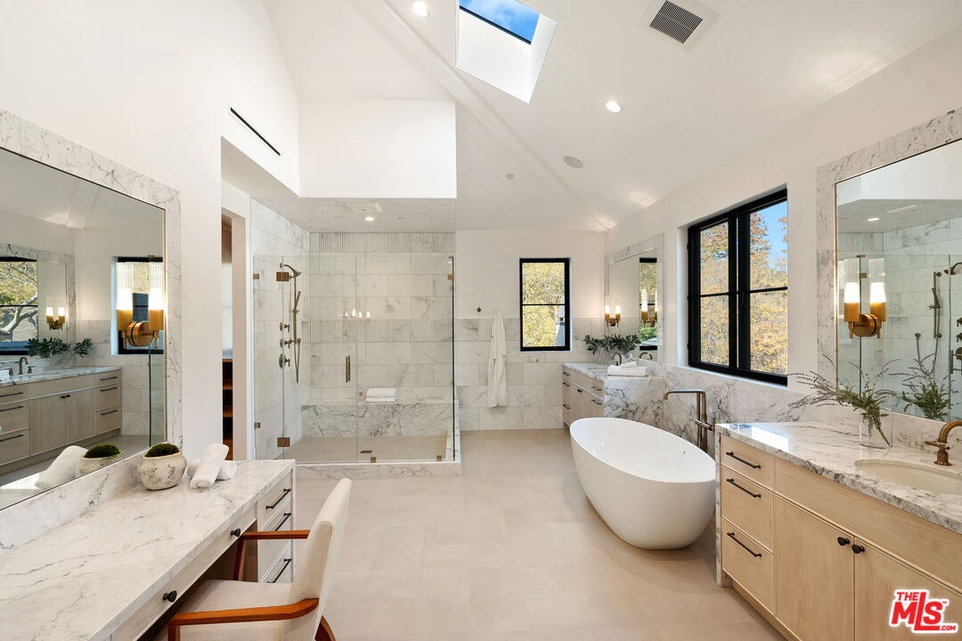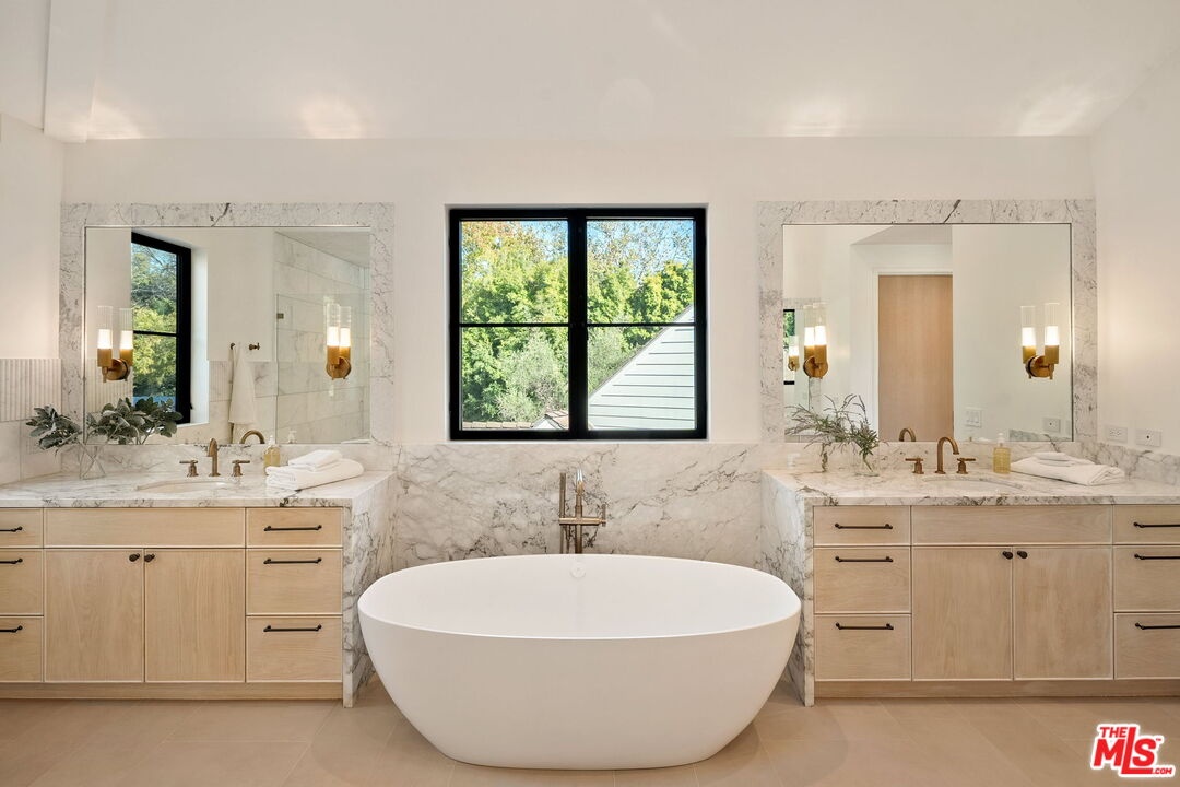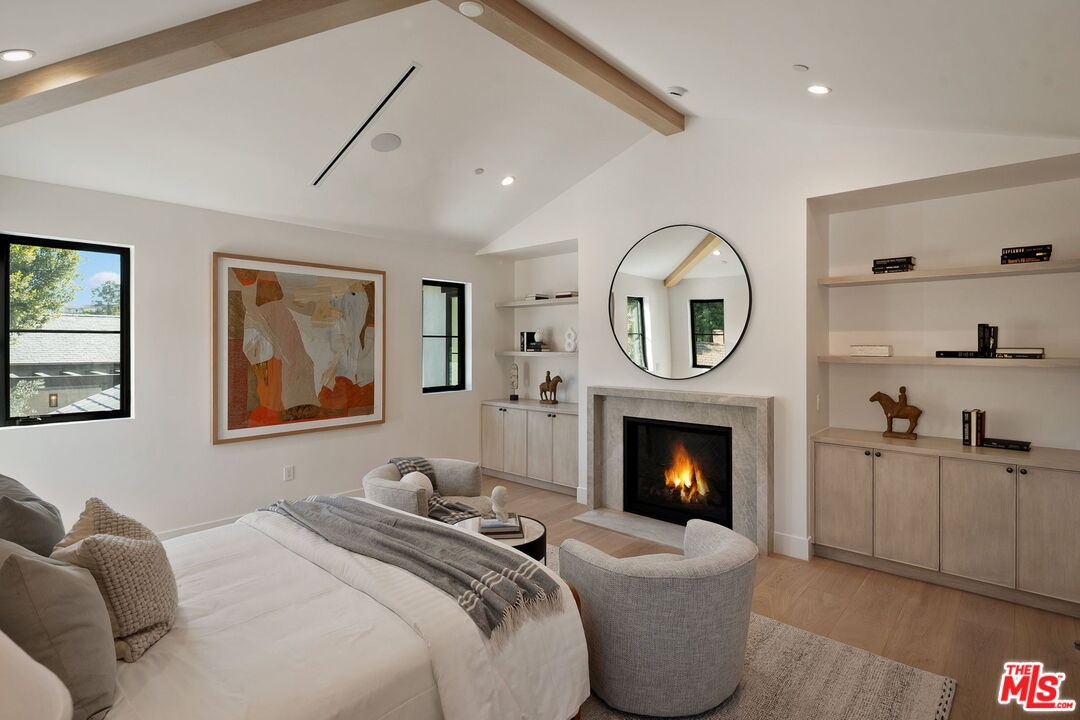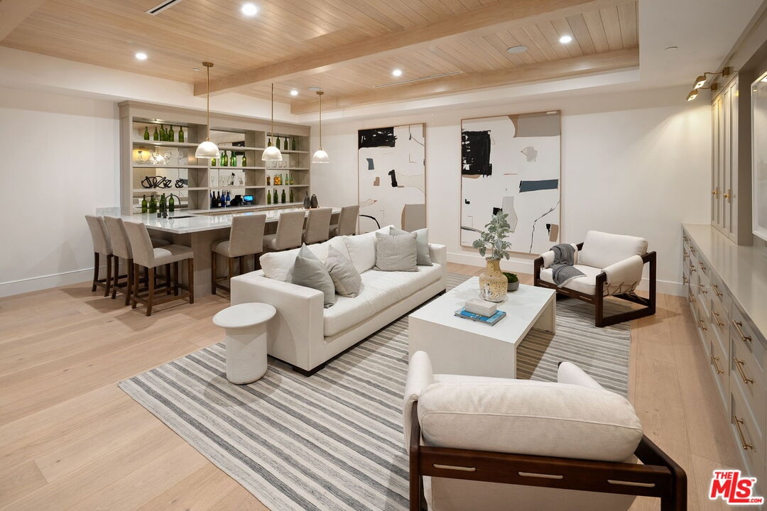 Exceptional custom residence blending contemporary sophistication with timeless elegance. Interiors feature wide-plank oak floors, natural wood elements, and a refined mix of slab finishes and custom cabinetry. The chef's kitchen is appointed with Sub-Zero refrigeration, Bluestar range, and a Miele espresso maker, opening to a soaring family room with double-height ceilings and walls of glass. Resort-style outdoor living includes a pool, ADU, built-in BBQ and beverage center, fire pit beneath the pergola, and landscaped grounds with a private entry water feature. Additional highlights: state-of-the-art theater, finished basement with gym, temperature-controlled wine cellar, home automation, elevator to all levels, two laundry rooms, a second Miele espresso maker in the primary suite, and three-car garage. A rare opportunity to own a thoughtfully designed estate offering luxury, comfort, and style in one of Los Angeles' most coveted neighborhoods.