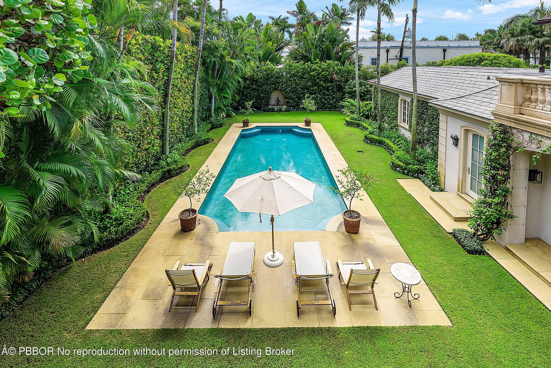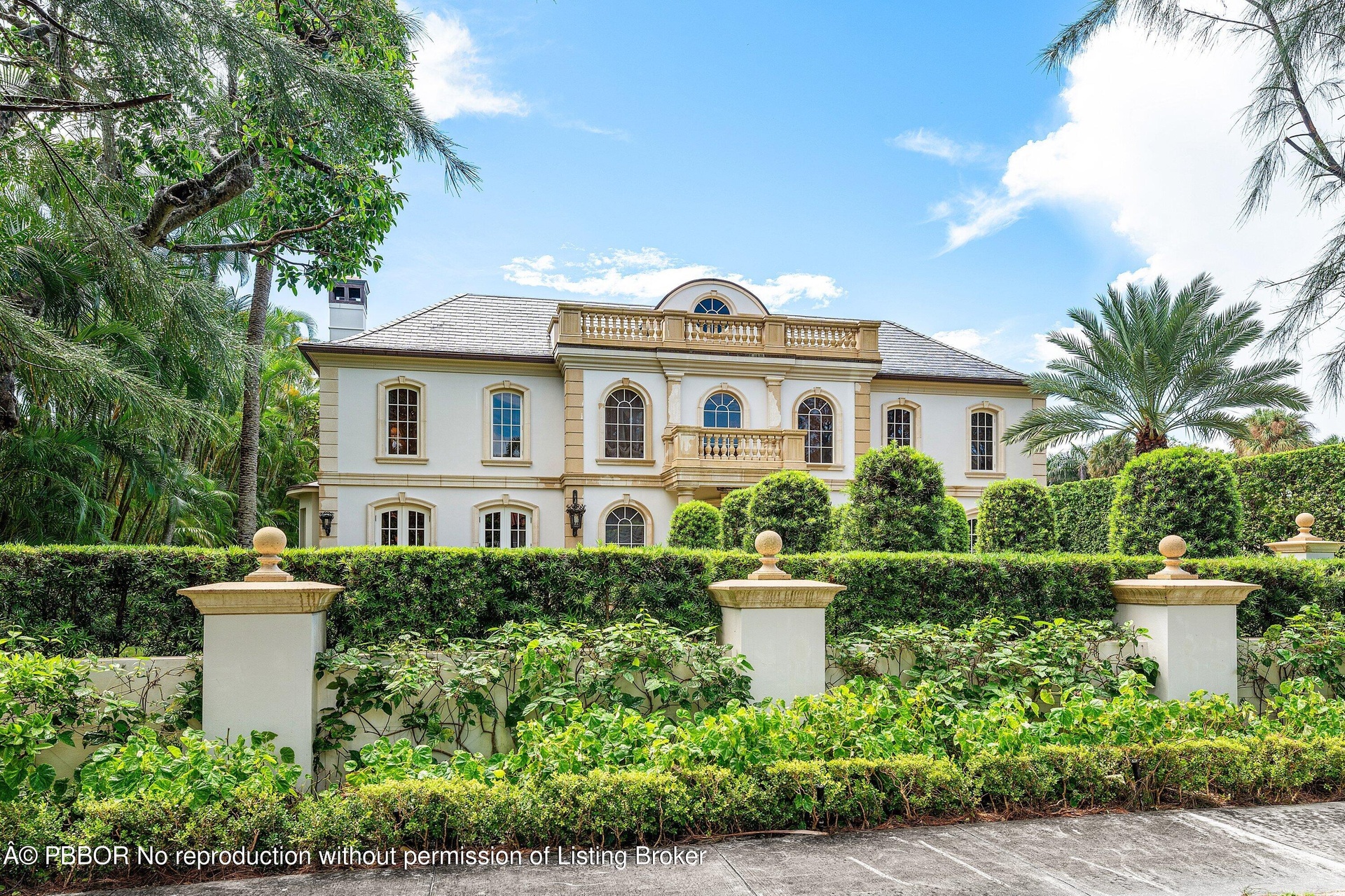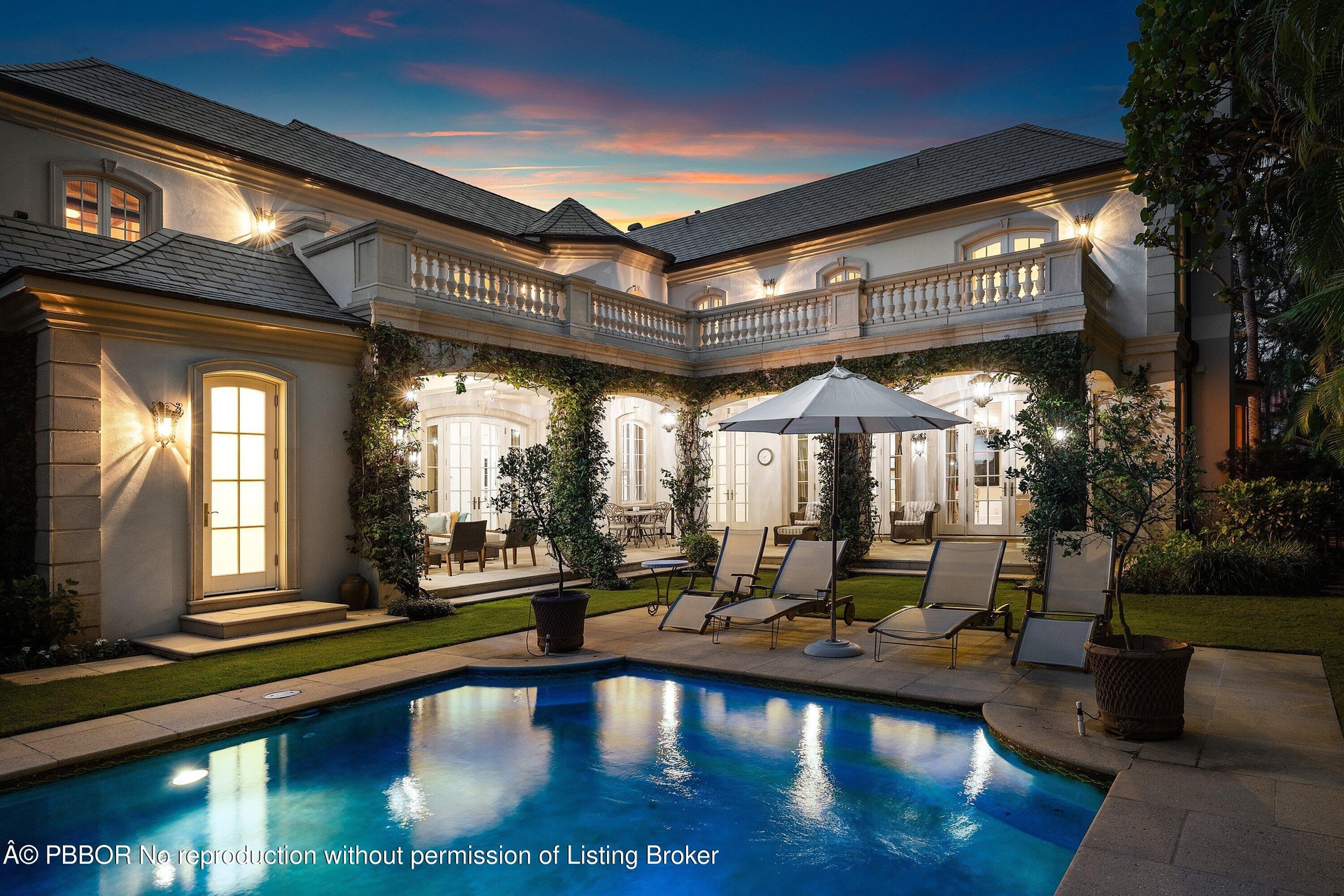 This extraordinary estate at 242 Wells Road combines classic French Provincial architecture with timeless elegance, offering an unparalleled lifestyle on one of Palm Beach's most prestigious streets. This magnificent 7,460 total sq. ft. French Provincial masterpiece is nestled on a sprawling 19,500 sq. ft. lot in the heart of Palm Beach. This stately manor, with its steep-pitched slate roof, symmetrical façade, and stone surrounds, exudes Old World charm and impeccable craftsmanship. The home's architectural grandeur is enhanced by graceful balustrades and meticulously sculptured landscaping, creating a serene and sophisticated retreat. Step inside to find luxurious interiors adorned with gleaming hardwood and marble floors showcasing exceptional attention to detail. A grand staircase, a stunning centerpiece of the foyer, welcomes you with its sweeping elegance, complemented by a private elevator. The residence offers 4 spacious bedrooms, 6 beautifully appointed bathrooms, and one half bath, fully furnished for effortless move-in elegance. The crown jewel is the expansive primary suite, featuring an expansive balcony overlooking the breathtaking pool and lush, professionally curated gardens. This serene retreat includes his-and-hers walk-in closets, separate opulent bathrooms with high-end finishes, and an elegant sitting room, perfect for quiet relaxation or intimate gatherings. A generously appointed guest suite also boasts its own balcony, offering stunning views of the tranquil outdoor oasis. Entertain with unparalleled style in the formal dining room, ideal for grand gatherings, seamlessly connected to a large butler's pantry and wet bar equipped for effortless hosting. The eat-in kitchen, a chef's dream, blends modern functionality with classic design, featuring top-tier appliances and ample space for casual dining. A stately fireplace anchors the formal living room, while a refined library provides an ideal space for work or leisure. Step outside to the large wraparound loggia or the luxurious balconies off the primary and guest suites, all offering captivating views of the expansive pool and gardens. The estate is complete with a 3-car garage with ample storage.