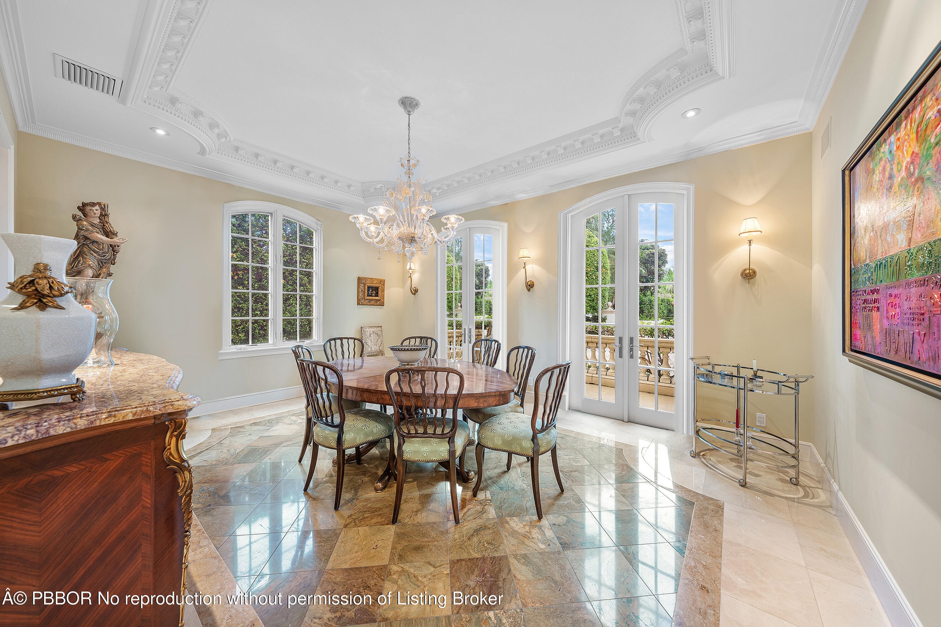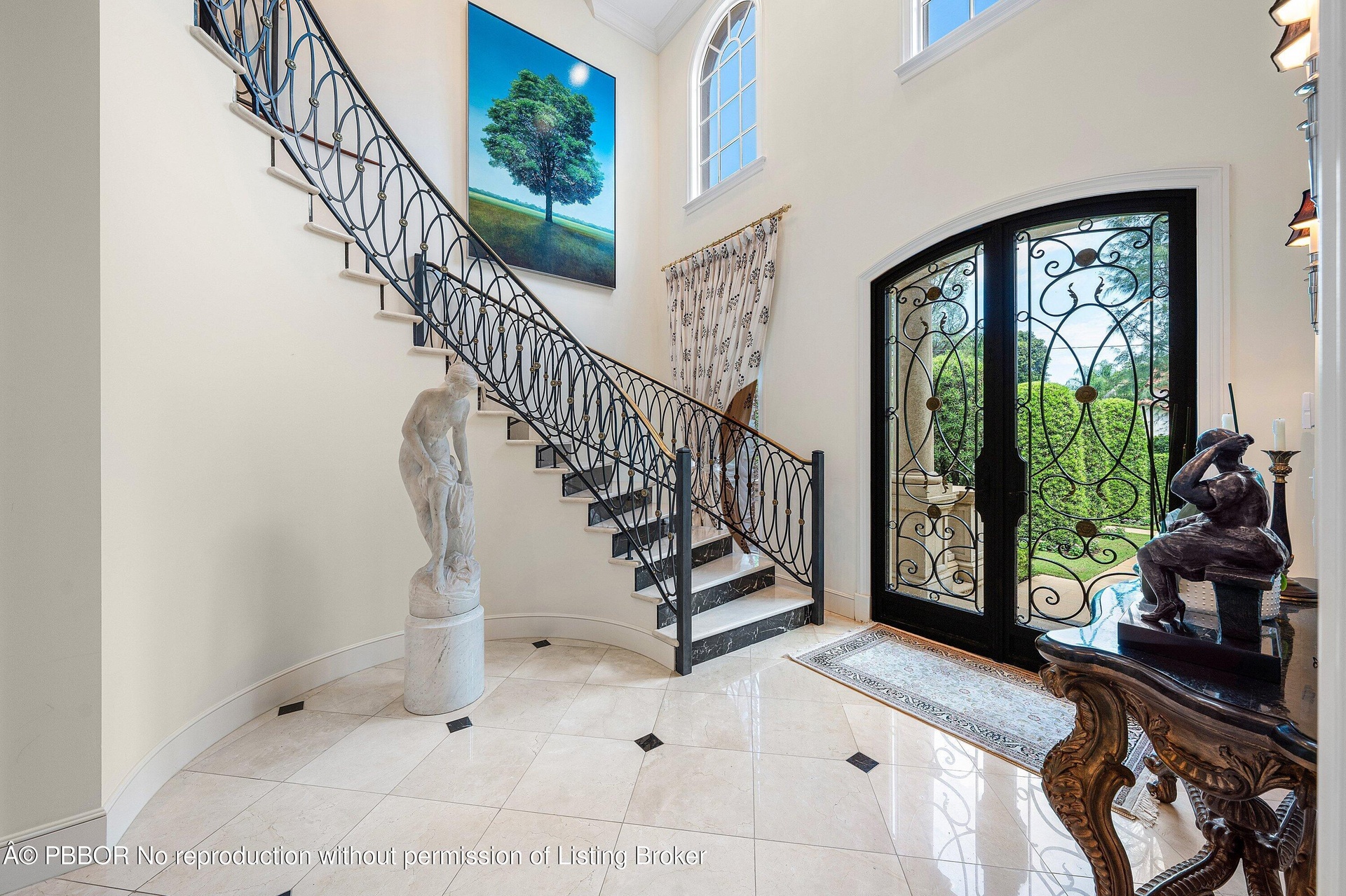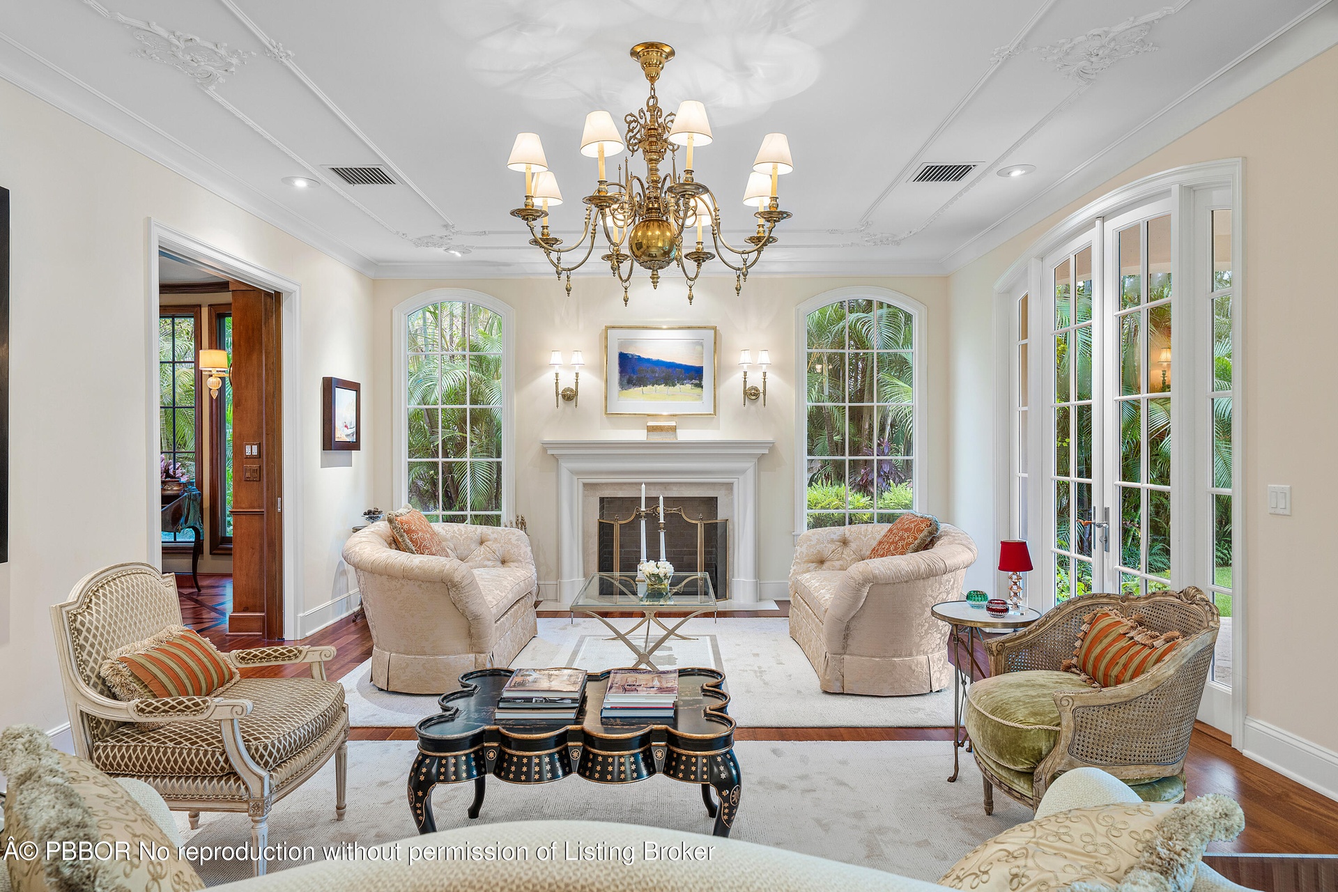 This extraordinary estate at 242 Wells Road combines classic French Provincial architecture with timeless elegance, offering an unparalleled lifestyle on one of Palm Beach's most prestigious streets. This magnificent 7,460 total sq. ft. French Provincial masterpiece is nestled on a sprawling 19,500 sq. ft. lot in the heart of Palm Beach. This stately manor, with its steep-pitched slate roof, symmetrical façade, and stone surrounds, exudes Old World charm and impeccable craftsmanship. The home's architectural grandeur is enhanced by graceful balustrades and meticulously sculptured landscaping, creating a serene and sophisticated retreat. Step inside to find luxurious interiors adorned with gleaming hardwood and marble floors showcasing exceptional attention to detail. A grand staircase, a stunning centerpiece of the foyer, welcomes you with its sweeping elegance, complemented by a private elevator. The residence offers 4 spacious bedrooms, 6 beautifully appointed bathrooms, and one half bath, fully furnished for effortless move-in elegance. The crown jewel is the expansive primary suite, featuring an expansive balcony overlooking the breathtaking pool and lush, professionally curated gardens. This serene retreat includes his-and-hers walk-in closets, separate opulent bathrooms with high-end finishes, and an elegant sitting room, perfect for quiet relaxation or intimate gatherings. A generously appointed guest suite also boasts its own balcony, offering stunning views of the tranquil outdoor oasis. Entertain with unparalleled style in the formal dining room, ideal for grand gatherings, seamlessly connected to a large butler's pantry and wet bar equipped for effortless hosting. The eat-in kitchen, a chef's dream, blends modern functionality with classic design, featuring top-tier appliances and ample space for casual dining. A stately fireplace anchors the formal living room, while a refined library provides an ideal space for work or leisure. Step outside to the large wraparound loggia or the luxurious balconies off the primary and guest suites, all offering captivating views of the expansive pool and gardens. The estate is complete with a 3-car garage with ample storage.