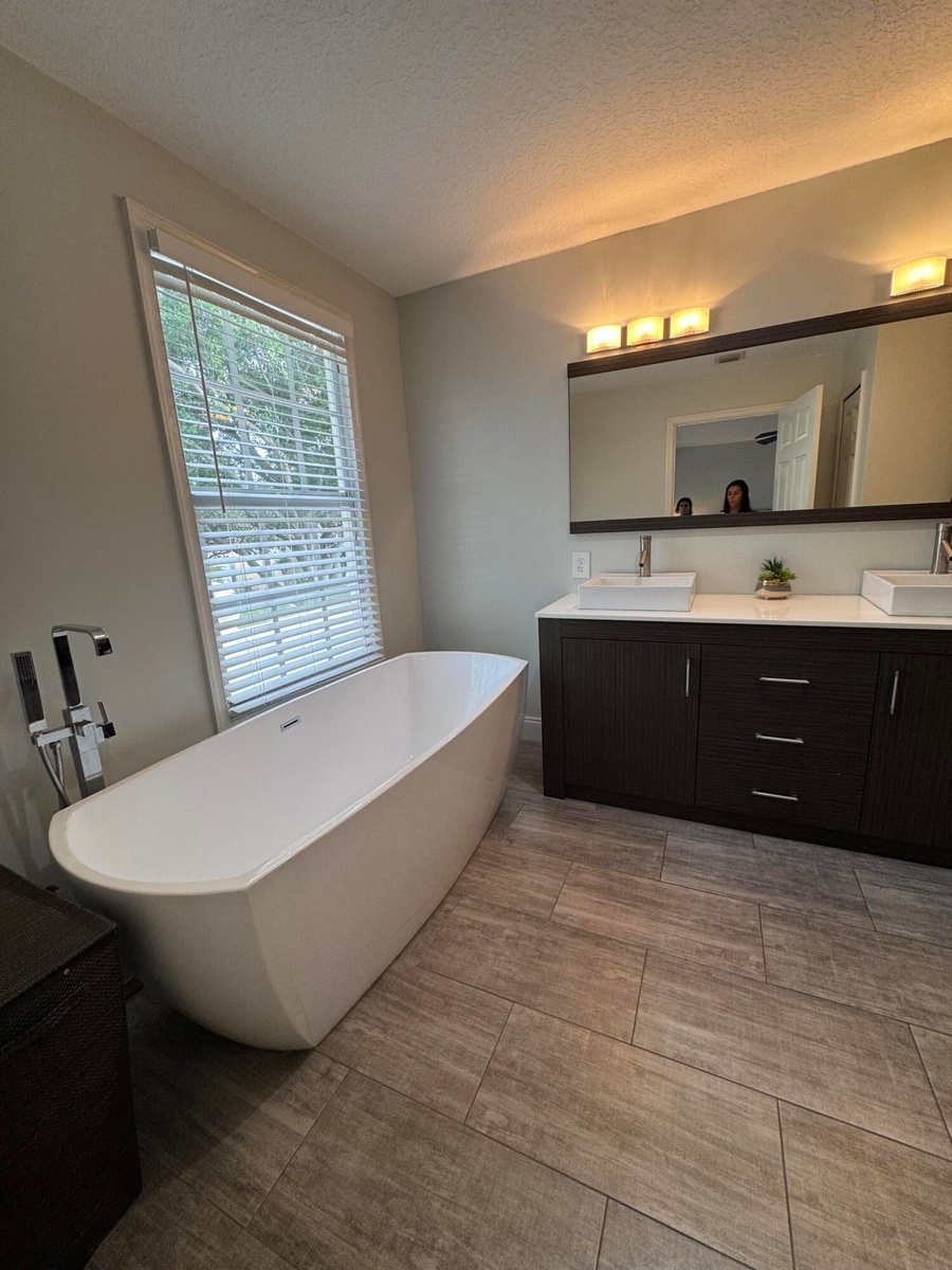 DescriptionWelcome to this beautifully updated 3-bedroom, 2.5-bath townhome with a two-car garage in the Monticeto gated community of Palm Beach Gardens. The home features a renovated 2024 kitchen with quartz countertops, a custom coffee bar, and sleek cabinetry, creating a stylish and functional centerpiece. Additional improvements include new flooring throughout, fresh interior paint, partial impact glass, full storm protection and a Tesla charger in the garage. The living room is enhanced by a modern feature wall with an electric fireplace, while the renovated primary suite offers a spa-like bathroom with a freestanding soaking tub, double vanity, and separate shower. A spacious private courtyard connects the home to the detached garage, adding outdoor living space with privacy.