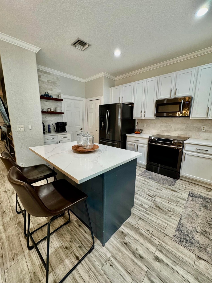 Welcome to this beautifully updated 3-bedroom, 2.5-bath townhome with a two-car garage in the Monticeto gated community of Palm Beach Gardens. The home features a renovated 2024 kitchen with quartz countertops, a custom coffee bar, and sleek cabinetry, creating a stylish and functional centerpiece. Additional improvements include new flooring throughout, fresh interior paint, partial impact glass, full storm protection and a Tesla charger in the garage. The living room is enhanced by a modern feature wall with an electric fireplace, while the renovated primary suite offers a spa-like bathroom with a freestanding soaking tub, double vanity, and separate shower. A spacious private courtyard connects the home to the detached garage, adding outdoor living space with privacy.
