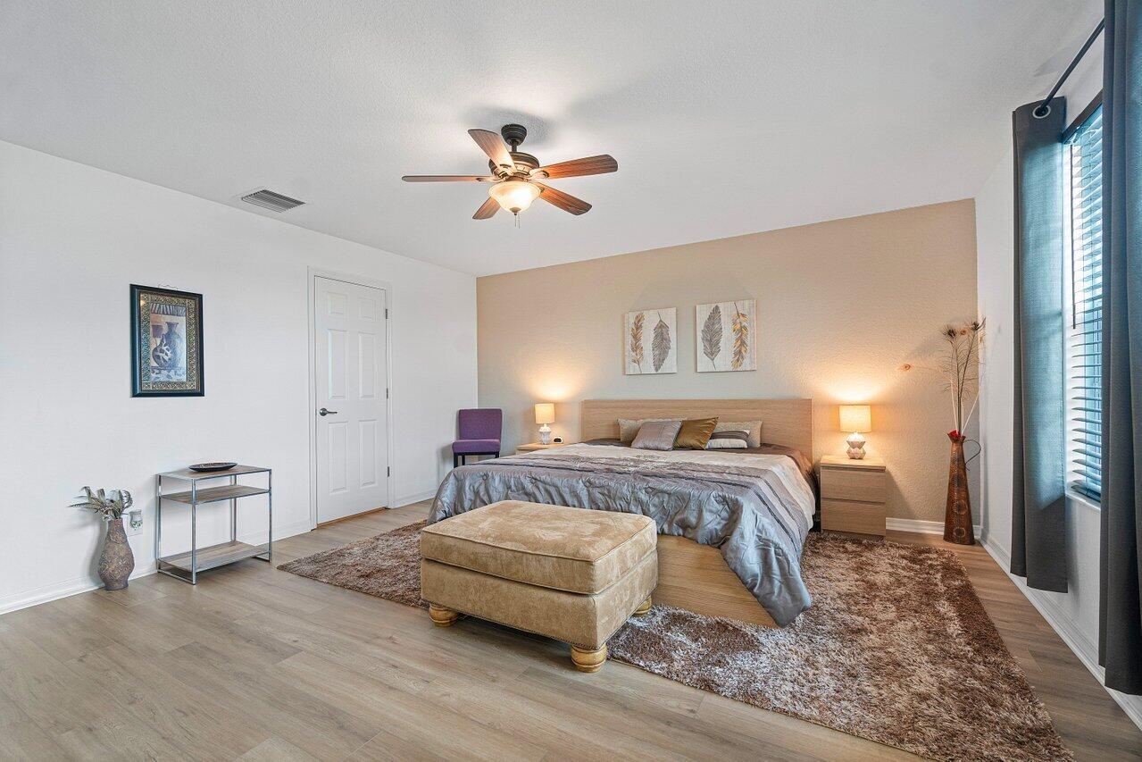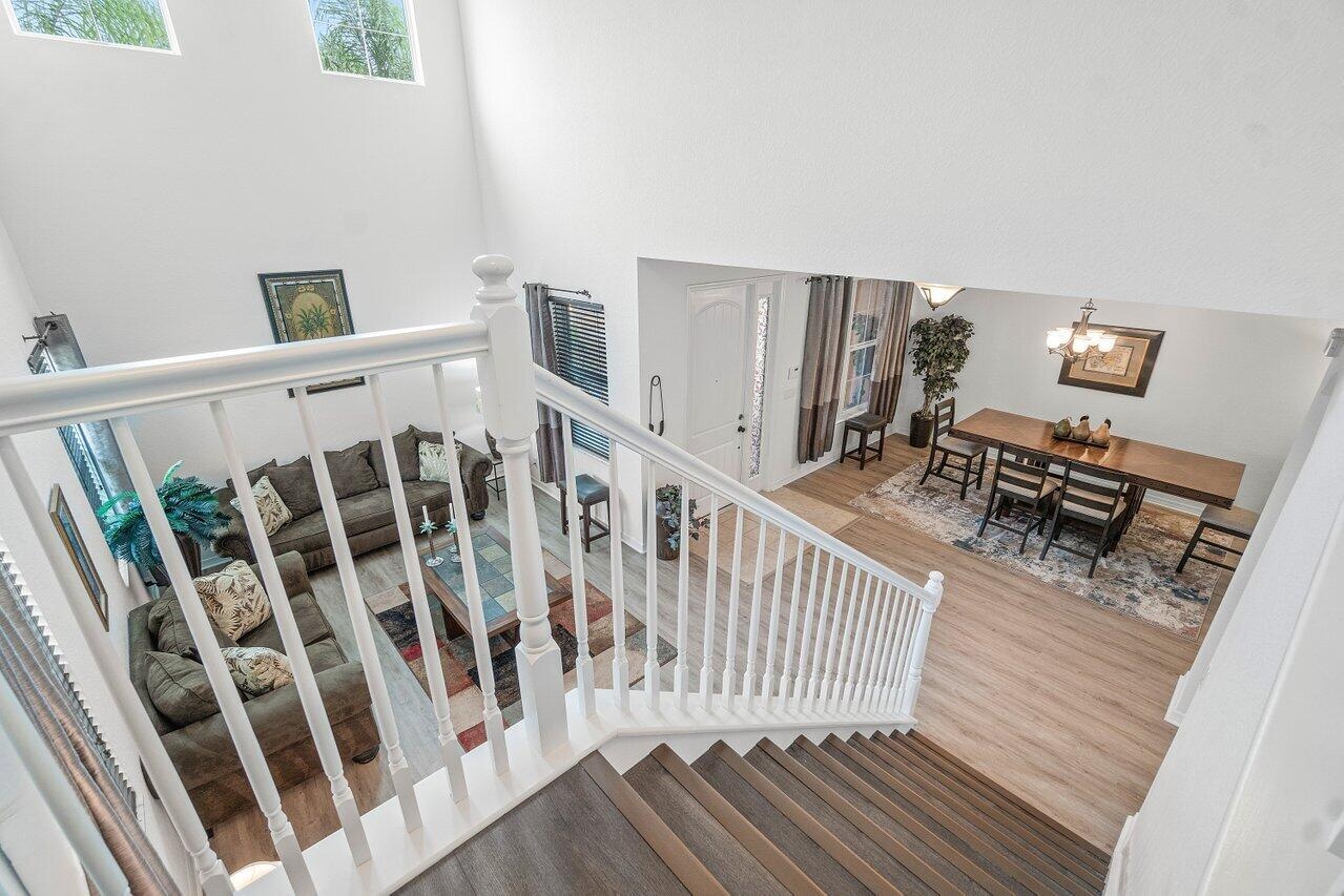 RENTED FURNISHED ONLY--This is the one you've been waiting for! Popular 4/4 + (private office/nursery off master) 'Pearl' model w/ sweeping lake views! You are greeted w/ grand iron banister staircase. Generous dining rm & living rm w/ dramatic high ceiling. Open island kitchen w/ granite, subway tile back splash, stainless appliances, walk-in pantry & raised bar. Open concept family room is adjacent & downstairs guest room has full bath. Upstairs master bedroom suite + office and 2 additional bedrooms and 2 baths, both en-suite. Enjoy an outdoor oasis, evening sunsets & al fresco dining under covered patio w/ sprawling lake views! HURRICANE IMPACT WINDOWS.
