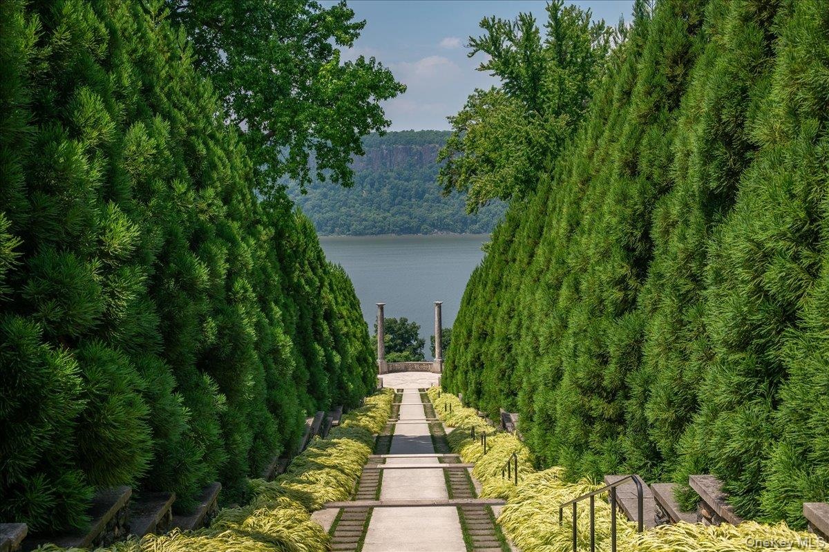 - Water view with stairway and a mountainous background
