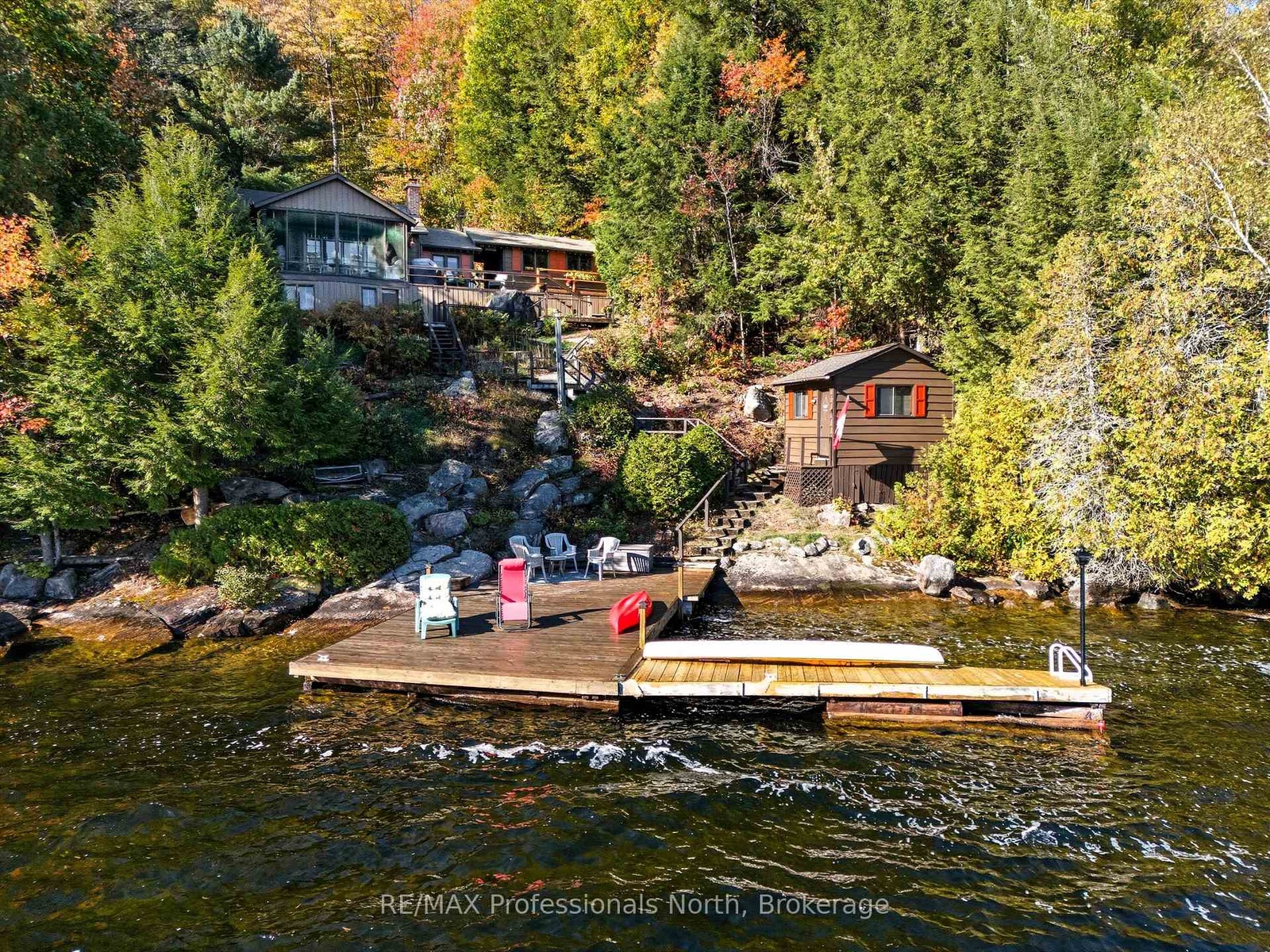Welcome to "Birchbent" on beautiful Lake of Bays. Experience this unique property that boasts a spectacular view and a main cottage that exudes warmth and charm. From the moment you arrive, you will be enraptured by the stunning panoramic lake views that make this property magical. This traditional Muskoka cottage has been well maintained and lovingly cared for over the years. Entering into the Muskoka Room, you will be greeted by the comfortable living area that offers stellar views over the lake. The Dining and Living Room are anchored by a magnificent granite stone fireplace. Down the hallway you will find 2 spacious bedrooms and a 4 - piece bathroom. The Kitchen is very functional and perfect for preparing meals. Running across the front of the Muskoka Room is a large, comfortable screened Veranda which looks out to the lake and waterfront below. Under the Veranda there is a storeroom and a private office space. Connected to the main cottage via a breezeway is a large cabin that has been renovated and offers a spacious bedroom and living area. There is a large deck at the front of the cottage that serves as a great area for entertaining. Here, you can also enjoy dreamlike nights with soft mood lighting and music. Follow the steps down to the waterfront where you will find a large dock embraced by a natural granite shoreline and deep water. Discover another waterfront feature by following a pathway to your own private beachfront that offers shallow water which is excellent for swimming. There is a firepit set back from the beach where you can enjoy a fire at night. The property offers ample space for future expansion possibilities. Located at the southwest end of Lake of Bays, "Birchbent" is only a little over two hours from Toronto and is 20 minutes away from the towns of Bracebridge and Huntsville. Properties like this rarely come to market, and it is being offered for the first time in 75 years. This is the opportunity that you have been dreaming of.