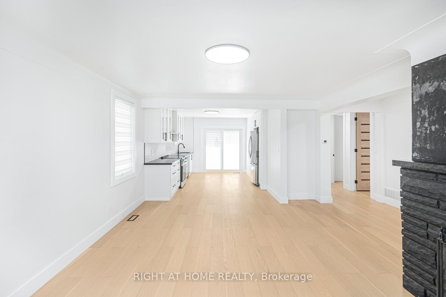 Welcome to this beautifully renovated modern home featuring 3+1 bedrooms, 2 full bathrooms and a separate entrance to the finished basement. Situated on a premium 53.33 ft by 166.00 ft lot in a highly sought-after neighborhood close to all amenities, this property offers the perfect blend of style and practicality. The open-concept main floor is flooded with natural light from oversized windows, showcasing a spacious living and dining area. The brand-new kitchen is a true showpiece, complete with quartz countertops, stainless steel appliances, and a functional design ideal for both everyday living and entertaining. Additional highlights include: stylish engineered hardwood flooring, roughed-in kitchen in the basement, brand-new quality doors and windows, a charming wood-burning fireplace (never used by the current owners) and the separate entrance to the finished basement provides excellent flexibility perfect for an in-law suite or additional living space. This move-in ready home combines elegance, comfort, and functionality, making it a standout opportunity in a prime location.