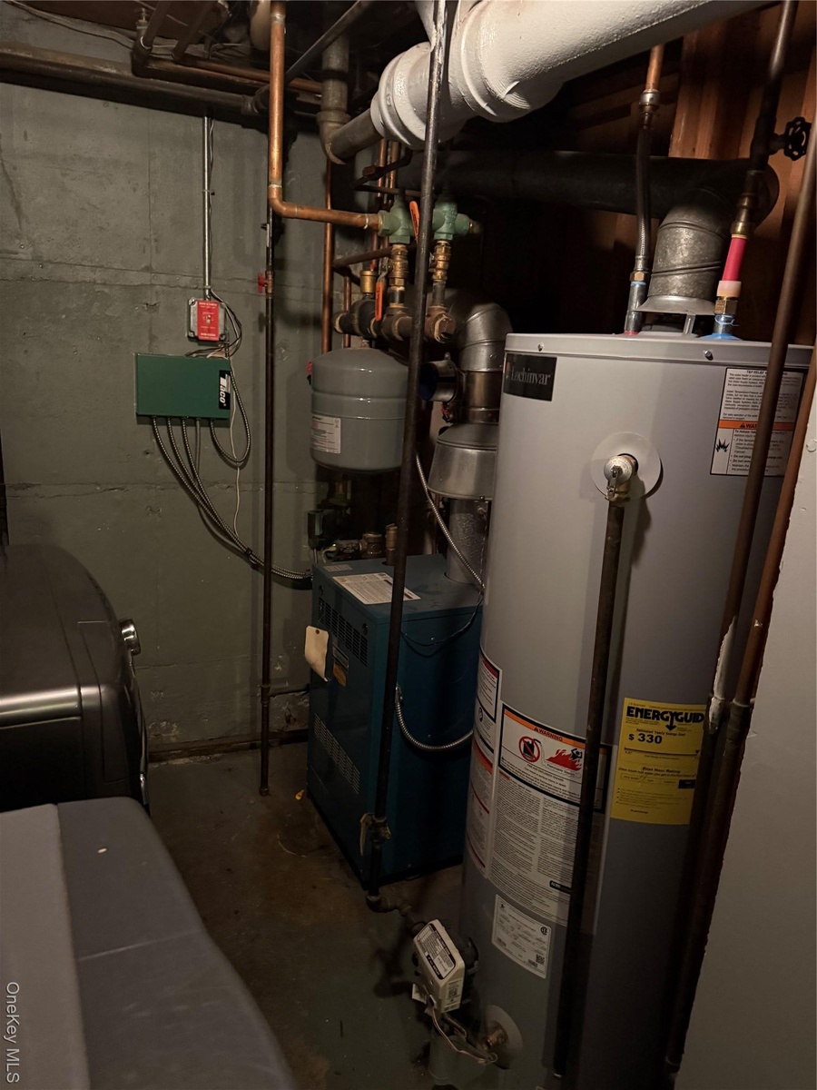 - Washroom featuring concrete flooring and washing machine and clothes dryer