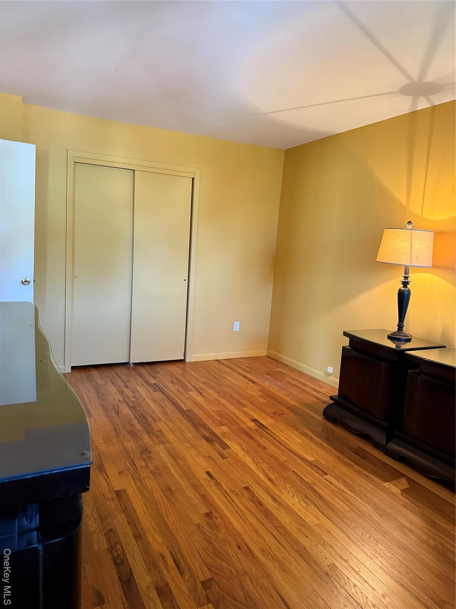 - Unfurnished bedroom with light wood-style flooring and a closet